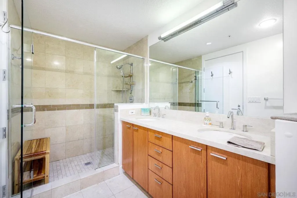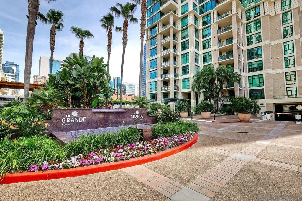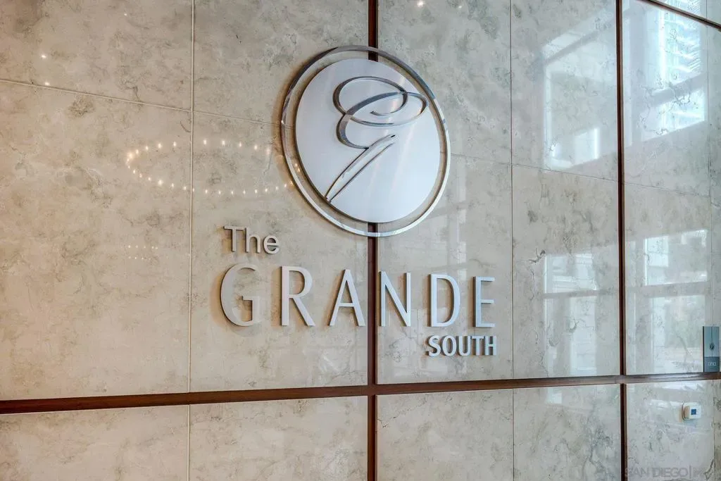 Elegant ocean and bay view residence in Grande South featuring the most desirable floorplan with two bedrooms plus a bonus room. Situated on the 18th floor, the home offers unobstructed southwest-facing views of San Diego Bay, the Pacific Ocean, and the city skyline. Refined interiors include a spacious primary suite, hardwood floors throughout, a cozy fireplace, Nest thermostats, battery-operated window shades, and a gourmet kitchen with a new GE Monogram refrigerator. The expansive balcony extends the living space and provides the perfect setting to enjoy panoramic views and sunsets. 2 side by side parking spaces. Grande South amenities include 24-hour concierge service, meeting room, party room and lounge with full kitchen and fireplace, visitor’s suite for guests, landscaped gardens, private tree-lined courtyards, individual storage lockers, bicycle storage, an 80-foot outdoor swimming pool, whirlpool spa, sauna and steam rooms, changing rooms with lockers, and a fully equipped exercise room. Floor plan is in associated documents. Seller will consider Seller Financing.