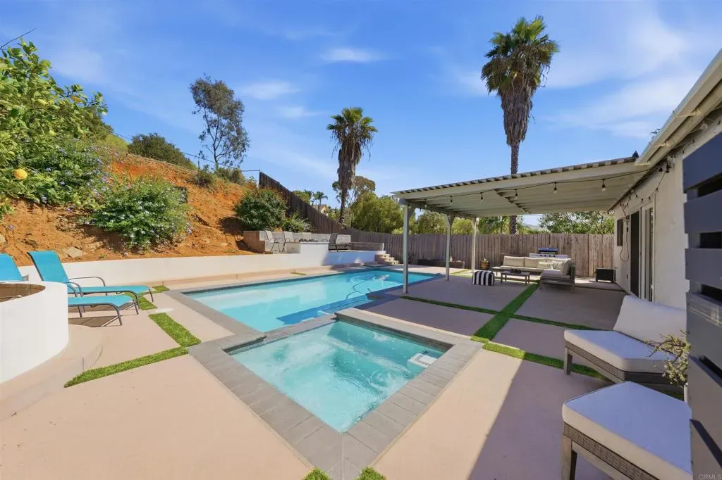 Located in Rancho Peñasquitos and within the highly sought after Poway Unified School District, with top rated schools approximately 5–10 minutes away, this single story 3 bedroom, 2 bathroom home sits on an oversized lot just over a quarter of an acre in one of North County San Diego’s most desirable communities. Inside, this home offers a bright and easy flow, with updated flooring, no carpets at all, fresh interior paint, and a welcoming living space centered around a fireplace with a custom mantle. This house shows very well and has been meticulously maintained by the owners. The kitchen features granite countertops, newer LG appliances and connects seamlessly to the main dining and living areas, making everyday living feel comfortable and connected. Out back is where this home really comes to life! The pool and spa were added in 2023 and feature mobile app based controls and upgraded equipment. A covered patio, gas fire pit (controlled via a mobile app), and mature fruit trees including lemon, lime, and meyer varieties create a space that feels both peaceful and ready to enjoy, whether that’s hosting family, friends or winding down at the end of the day. Additional features include newer HVAC replaced in 2023, solar for energy efficiency, smart home features including a Nest thermostat and Ring system, and an attached 2 car garage with ample storage. Over $130,000 of upgrades done within this home recently. Enjoy being just minutes from Los Peñasquitos Canyon Preserve and Black Mountain Open Space Park to name a few, offering miles of scenic trails for walking, hiking, and biking. With convenient access to the 56 freeway, commuting is simple, while everyday essentials like grocery stores, shopping, dining, and coffee shops are all just a short drive away. This is a great opportunity to own a single story pool home with space, functionality, and a backyard you’ll actually use. Don’t miss this opportunity to make this one yours, it won’t last long! ***COME JOIN US AT OUR OPEN HOUSES THIS WEEKEND AND ENJOY SOME SNACKS TO KICK START YOUR WEEKEND***