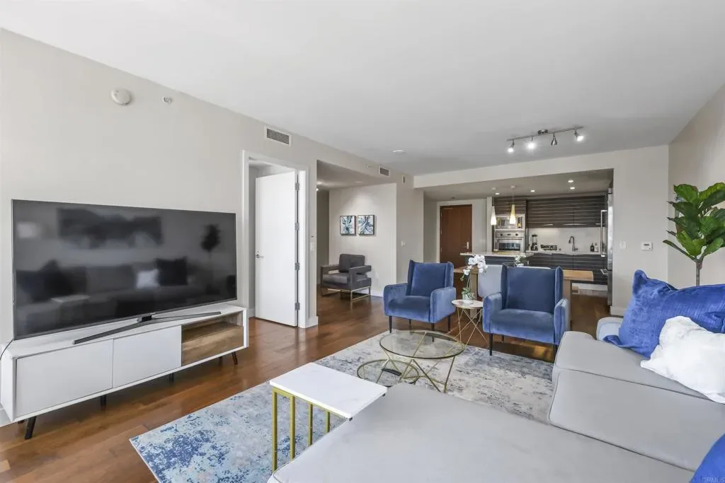 An elegant destination in Downtown San Diego well appointed with high end Viking appliances. Facing the southwest, wake up to ocean, bay, mountain and city views . Plenty of space to entertain with 2 bed + den 2 bathrooms. Amenities include a movie theater, wine tasting room/ cellar, reading library, conference center, sauna, steam room, swimming pool, hot tub and gym. A 24 hour security and concierge team welcome you and your guests upon every entry to the building and you pay no guest fees!