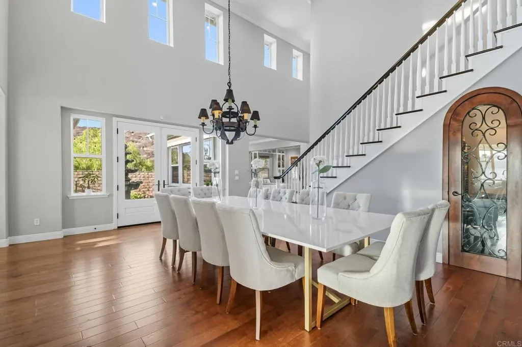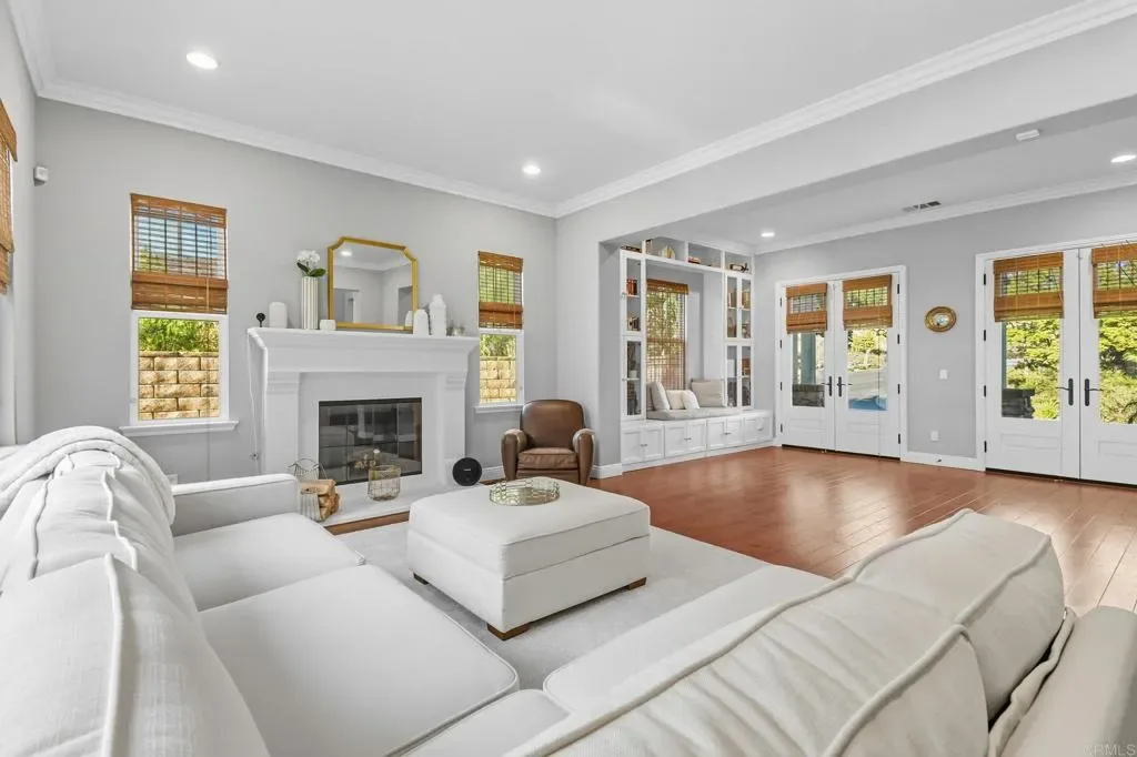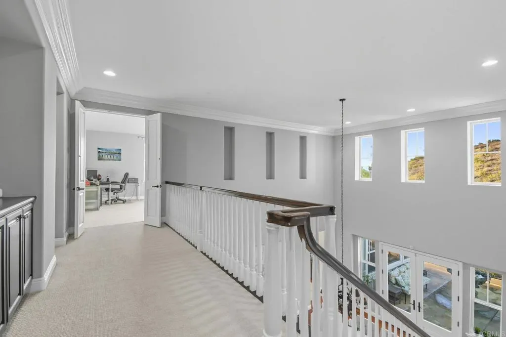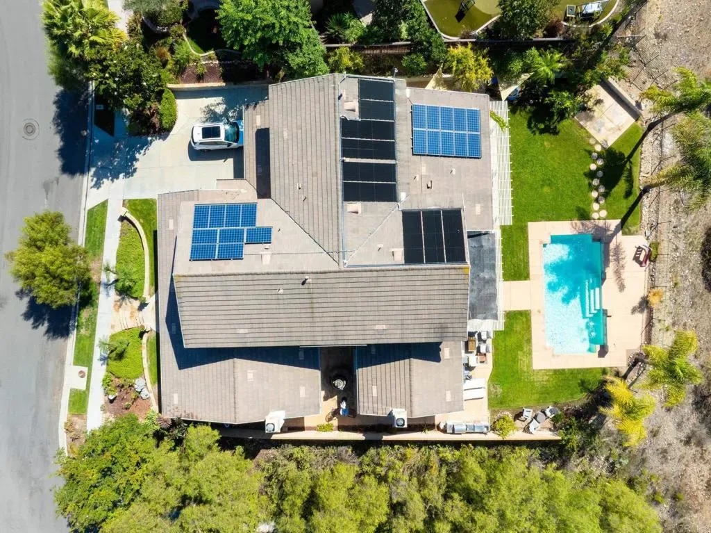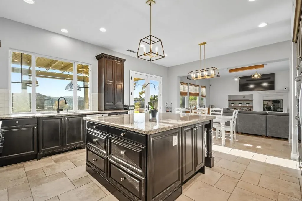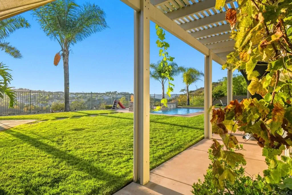Luxury Retreat in Stonebridge Estates | Premium Corner View Lot Experience resort-style living in this beautifully designed Stonebridge Estates home, ideally situated on a premium corner lot with no neighbors to the side or behind, offering exceptional privacy and sweeping open-space views. Inside, soaring ceilings, abundant natural light, and elegant hardwood and stone flooring create a warm yet sophisticated atmosphere. The gourmet kitchen features Thermador appliances, a built-in refrigerator, and a commercial-grade range, opening seamlessly to the spacious family room perfect for everyday living and entertaining. The flexible floor plan includes two bedrooms on the main level, including a luxurious primary suite with direct backyard access. The spa-inspired bathroom features dual vanities, a soaking tub, stone shower, and an oversized walk-in closet. A second downstairs suite with private bath and walk-in closet provides an ideal space for guests or multi-generational living. Upstairs offers four additional bedrooms, including one with an en-suite bath and retreat area perfect for an office or playroom. Another oversized bedroom showcases stunning panoramic views and can easily function as a loft, media room, or additional suite. Step outside to a resort-style backyard featuring a designer pool, lush landscaping, and an impressive collection of fruit trees including pomegranate, peaches, lemons, avocados, persimmons, loquat, and grapevine. Additional features include paid solar for the home and pool, Nest thermostat, crown molding, wine cellar, three-car garage, and converted guest quarters. Located within the highly acclaimed Poway Unified School District and close to parks and trails, this exceptional home blends luxury, privacy, and everyday comfort.