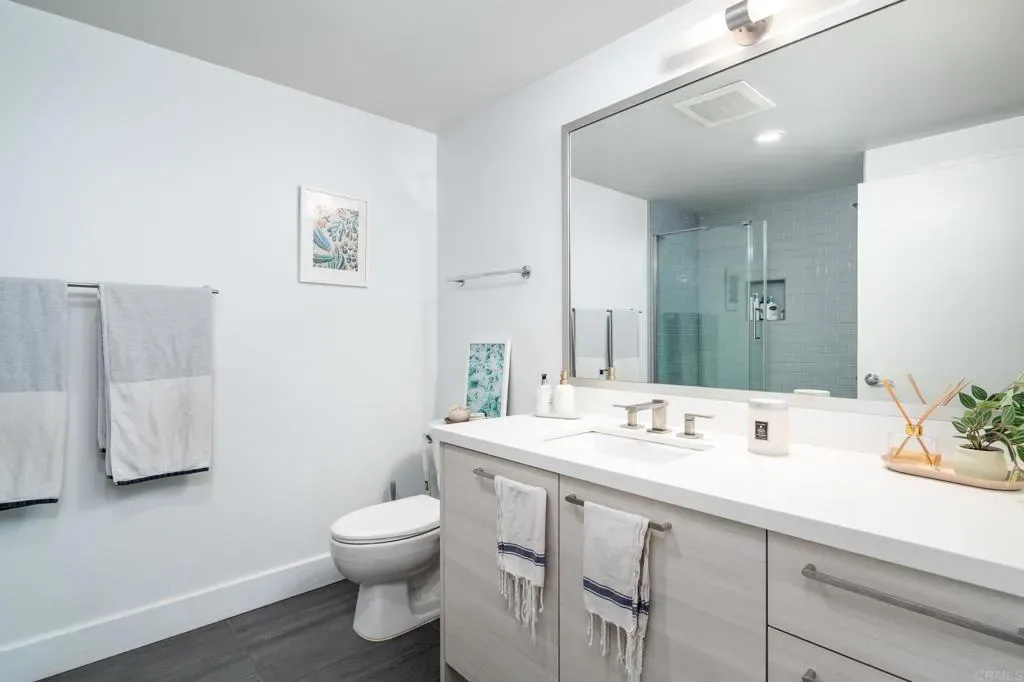 Discover refined urban living at the Breeza community in vibrant Little Italy! This exceptional residence has been masterfully reimagined by a renowned San Diego architect, delivering sleek modern design and a contemporary ambiance throughout. Offering an expansive 1,999 sq. ft. — the largest floor plan in the building — this home provides a downtown experience that feels like a private single-family retreat. The stunning primary bathroom has been completely remodeled with Scavolini cabinets, new mirrors, upgraded lighting, an expanded shower, and designer plumbing fixtures. Enjoy breathtaking bay views, two private balconies, a full-size laundry room, and two side-by-side parking spaces. Perfectly situated between Little Italy and the waterfront, the location offers unbeatable walkability to dining, shopping, and the marina. Breeza is celebrated for its lush, award-winning landscaping and resort-style amenities, including a rooftop terrace with panoramic views, a heated pool and spa, a resident lounge, fitness center, business center, community Wi-Fi, and on-site professional management. Explore the virtual tour for a closer look at this remarkable lifestyle opportunity!