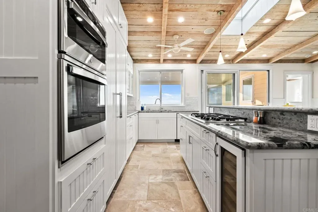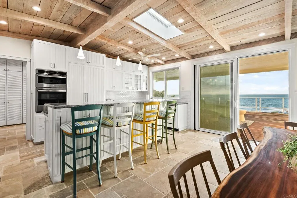 Perched directly on the bluff, this rare high-end oceanfront cottage offers a front-row seat to the Pacific. One of only 12 single-family homes positioned directly on the bluff in 92107, this dual-master residence was extensively remodeled in 2011 and has been meticulously customized with no expense spared. The main home features Italian stone flooring, granite counters, and reclaimed 1800s barn wood accents, all bathed in natural light through brand new Pella windows and doors (10-year warranty), replaced in 2025 along with a new roof. The chef’s kitchen is outfitted with a brand new GE microwave and oven, alongside a Dacor gas stove, custom Miele dishwasher, custom Dacor refrigerator, and a U-Line wine cooler. Modern essentials include a Honeywell smart home alarm, WAP internet system, Sonos-ready speaker fittings, and a tankless water heater. The primary suites offer a spa-like experience with steam shower systems. This property is uniquely enhanced by a newly rebuilt, high-end usable structure that serves as a luxurious extension of the main home. Both the main residence and this additional usable space feature two separate central air and climate control systems, one dedicated to the main cottage and one for the additional usable space, ensuring year-round comfort throughout. This versatile space is anchored by a special-order Paralam beam and engineered with footings to support a second story. Inside, the space boasts porcelain floor planks, luxury shaker cabinets with floor-to-ceiling storage, and stone countertops with subway tile accents. High-end amenities include a full bathroom, separate laundry with washer/dryer, a refrigerator and Dacor appliances. Outside, enjoy a private outdoor shower and over 60 feet of ocean frontage, all just blocks from Ocean Beach’s vibrant restaurants and the iconic Sunset Cliffs shoreline. Representing the epitome of a lock-and-leave waterfront investment, this property offers the ultimate blend of privacy, sophisticated smart-home living, and walkable coastal luxury.