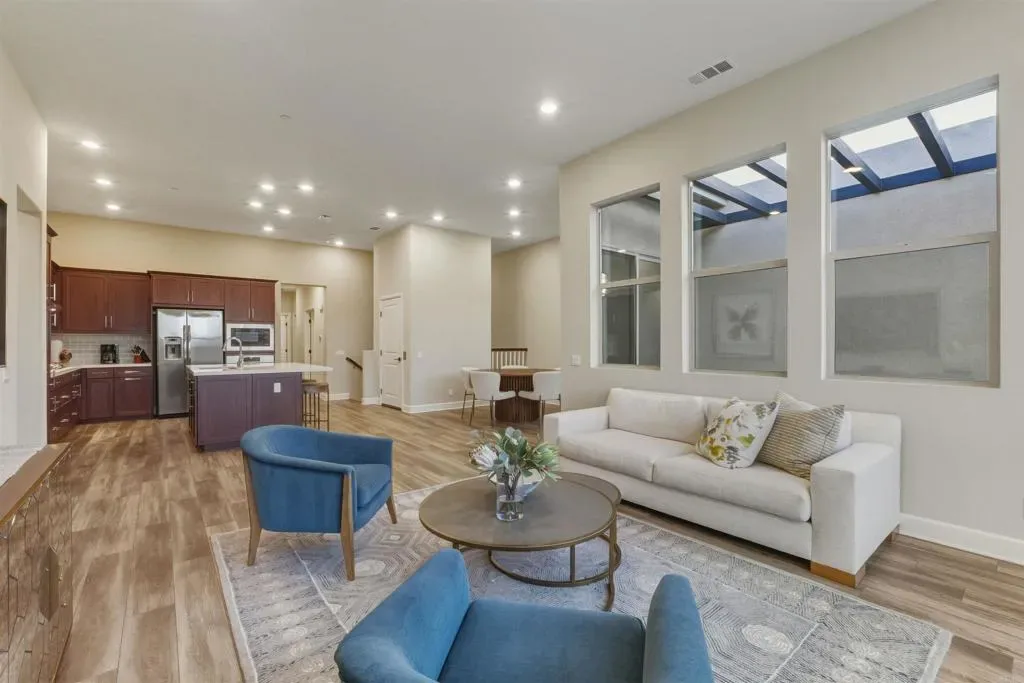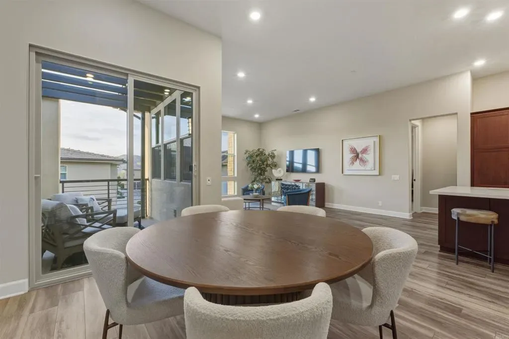 3 bed, 2 bath townhome for sale in the highly desirable 55+ community of Del Sur. This private, quiet, and secure two-story townhome is located within a gated community and offers the perfect blend of comfort, convenience, and modern luxury. Enjoy an open-concept main living level accessed by your own private elevator. Smart Home features include locks, thermostats, lighting, doorbell, and upgraded WiFi. The kitchen shines with Coffee Shaker cabinetry, soft-close drawers, and thoughtful upgrades throughout. Sunny balcony with a mountain view. Immaculately maintained with upgraded flooring, crown molding, and a spacious primary bedroom featuring a large walk-in closet. Walk to shopping, dining, and parks, or enjoy the resort-style clubhouse with pool and spa, state-of-the-art fitness center, lounge, game room, BBQ area, and fire pits. As part of the award-winning Del Sur master-planned community, residents also enjoy access to 11 community pools, 14 parks, scenic walking trails, and convenient shopping and dining at Del Sur Town Center. This exceptional residence delivers a rare opportunity to enjoy luxury, comfort, and a vibrant 55+ lifestyle.