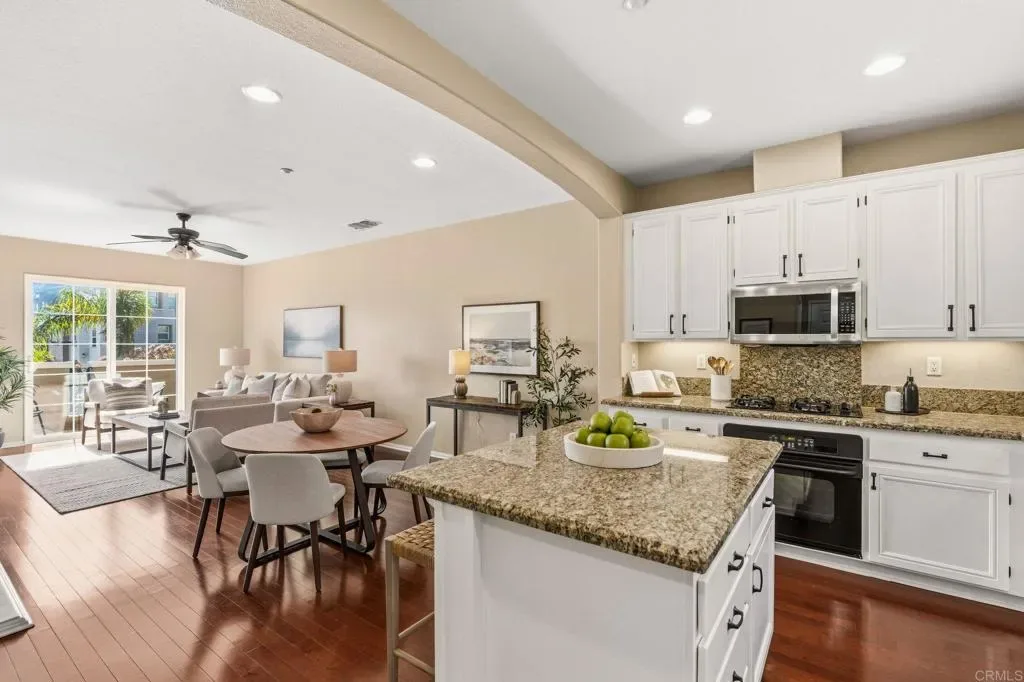 This beautiful home is located in the highly sought after San Moritz community of 4S Ranch which is one of North County’s most desirable neighborhoods. With views overlooking the sparkling pool and courtyard, the setting feels both private and connected. The entry level features a bedroom and full bath—ideal for guests, a home office, or multigenerational living. Upstairs, the main living area is bright and open, with a fireplace warmed living room that flows seamlessly into the dining area and large kitchen complete with a center island that has breakfast bar seating, stainless steel appliances, ample cabinetry and large pantry. A private balcony extends the living space and creates a natural indoor-outdoor flow. The top floor is anchored by the spacious primary suite, offering an oversized walk-in closet, dual sinks, large windows that bring in natural light, and a versatile alcove perfect for a nursery, office, or additional retreat space. Living in 4S Ranch means more than just a home – it’s a lifestyle. Residents enjoy access to top-rated Poway Unified schools, multiple parks, approximately 10 miles of scenic trails, and about 1,600 acres of thoughtfully designed open spaces designated as a wildlife habitat. The nearby 4S Commons Town Center offers convenient shopping, dining, and everyday essentials, while community amenities like the Splash Pad at Pioneer Park, sports fields, the public library, Boys and Girls Club and neighborhood events make this a truly vibrant place to call home.