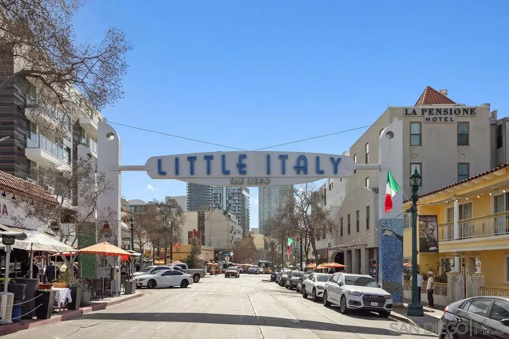 Welcome to Unit 513 at Porto d’Italia, a rare penthouse opportunity and the best priced 2 bed 2 bath in the heart of Little Italy. Complimentary 6-month lease of 2nd parking space with potential to extend, subject to availability. Perched on the top floor of this sought-after community, this beautifully appointed home blends charm, convenience, and vibrant city living. Just outside your door are Little Italy’s award-winning restaurants, cafés, boutiques, and beloved weekly Farmers Market, with easy access to the waterfront, public transportation, and San Diego International Airport. Tucked into a serene pocket of the neighborhood, the home offers a peaceful retreat above the energy below. Inside, an open, inviting layout is anchored by a spacious primary suite with a walk-in closet. Thoughtful updates include refreshed cabinetry with matte black hardware, updated sinks and light fixtures in the kitchen and both baths, and floating shelves in the primary bath. One dedicated parking space is included in the secure underground garage, along with access to a beautifully maintained courtyard patio with two BBQs and bay views, plus a fully equipped fitness center on the first floor. Penthouse opportunities in Porto d’Italia are exceptionally rare, making this a standout offering in one of San Diego’s most walkable neighborhoods.