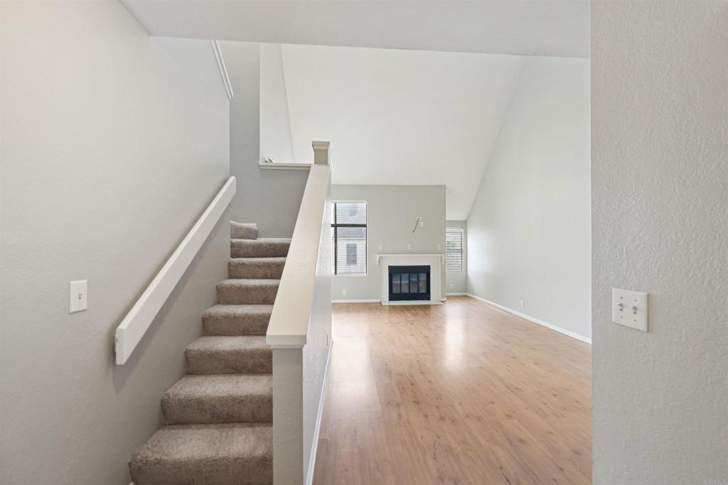 MOVE IN READY! Bright and spacious 2 bedroom, 2 bath townhome-style condo in the Creekwood at River Run community in Mission Valley. This unit features a vaulted living room ceiling, fireplace, and sliding doors that open to a private covered balcony, creating an open and comfortable living space. The kitchen offers generous cabinet and counter space with tons of natural light. This two story floor plan includes two bedrooms, in-unit washer and dryer and recently refreshed neutral finishes throughout. Creekwood at River Run is a well-maintained community with walking paths, pool, spa, fitness center, and clubhouse. Unit comes with 2 parking passes (one covered). Conveniently located near shopping, dining, trolley access, Snapdragon Stadium, and major freeways. A great opportunity for an owner-occupant or investor looking for a centrally located, low-maintenance home in Mission Valley!