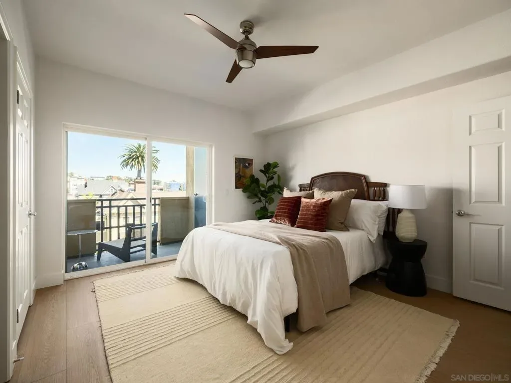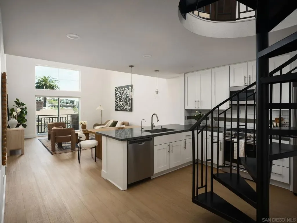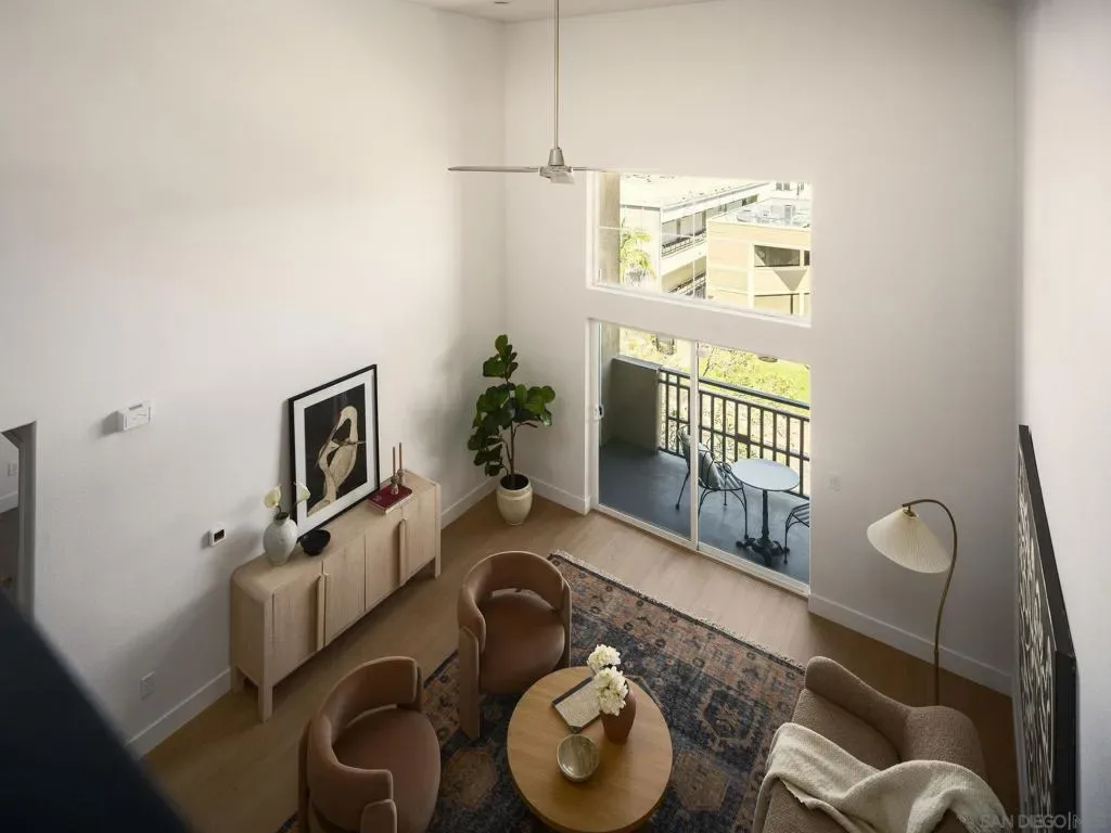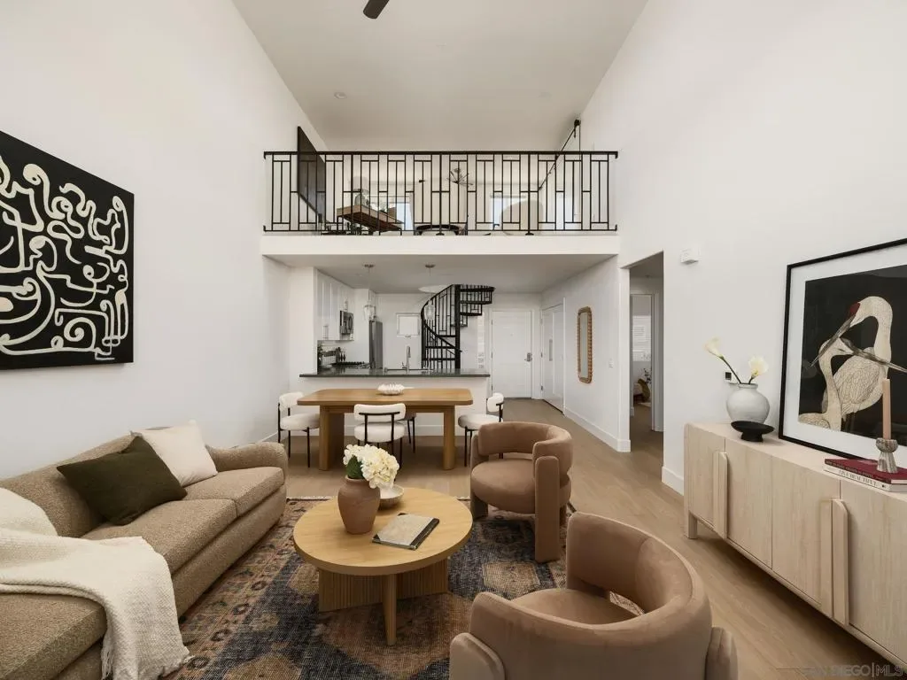First time on market! One-of-a-Kind Loft Condo at The Lodge in Bankers Hill! Welcome to one of the most distinctive residences, as a matter of fact, the only unit of its kind in The Lodge, a sought-after Bankers Hill community. One feature that sets this apart is a permitted loft & windows addition, with a custom fabricated spiral staircase, that adds a versatile third space above the two main level bedrooms, ideal for a home office, studio, bedroom or guest area. Vaulted ceilings and great natural light make the home feel open and expansive. The loft features added windows for additional light, a peek view, and improved airflow throughout. The main level has 2 bedrooms, 2 bathrooms & 2 balconies, extending the living space outdoors giving you great spaces to enjoy San Diego’s famous weather. The unit has been freshly painted & has upgrades throughout & offers more storage than most condos, with three dedicated storage spaces in addition to nicely sized closets. In-unit laundry, two community secured garaged parking spaces, and central AC round out the practical amenities. Community features include a BBQ and outdoor seating area, a fitness center, and secured gated access. The Lodge sits steps from Balboa Park, Little Italy, and the dining corridor along 5th Avenue, with Downtown San Diego just minutes away. You won’t want to miss out on this truly unique and special home!