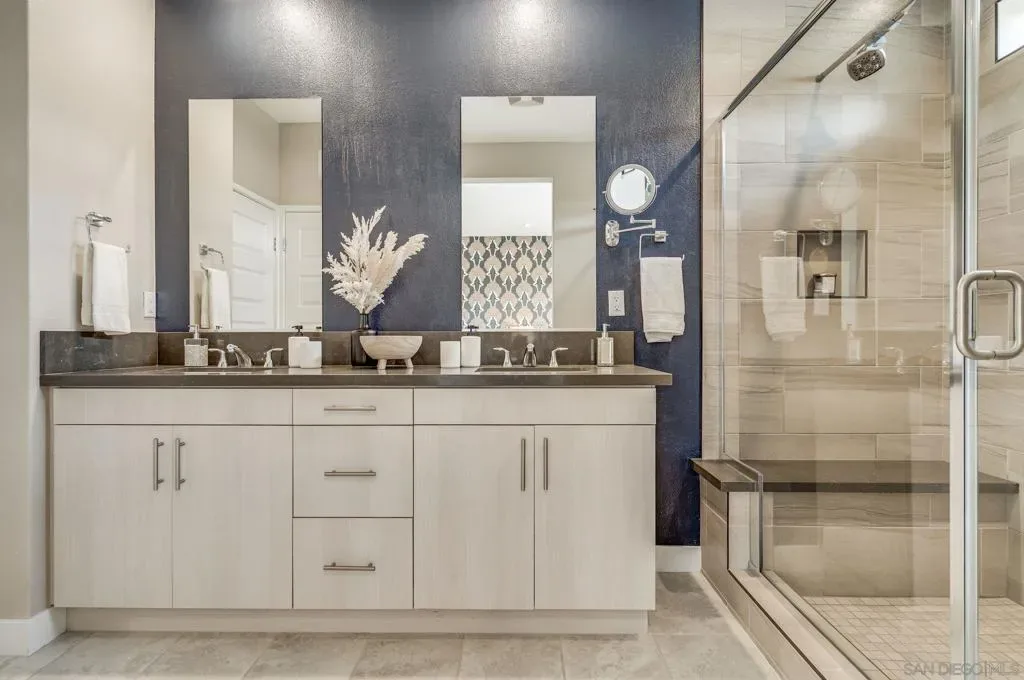 Modern luxury meets exceptional community living at 2804 Avella Circle in Civita. Set just steps from the renowned Civita Rec Center, this private and highly upgraded residence showcases a chef-inspired kitchen with walk-in pantry, wine fridge, and sleek, contemporary finishes. Beautiful grand chandeliers illuminate the staircases, adding elegance and sophistication throughout the home. The desirable first-floor bedroom with full bath is perfect for guests or flexible use, while the bright, clean interiors create a refreshing and welcoming atmosphere. The refined primary suite features a custom walk-in closet and a beautifully appointed bathroom, and the inviting terrace extends your living space outdoors ideal for relaxation or intimate entertaining. Civita offers a premier lifestyle with its 14-acre central park, resort and lap pools, cutting-edge fitness facilities, scenic trails, playgrounds, dog parks, and vibrant community events. With shopping, dining, and entertainment just moments away, Civita stands as Mission Valley’s ultimate destination for modern urban living. This stunning home is move-in ready and prepared to welcome its next owners.