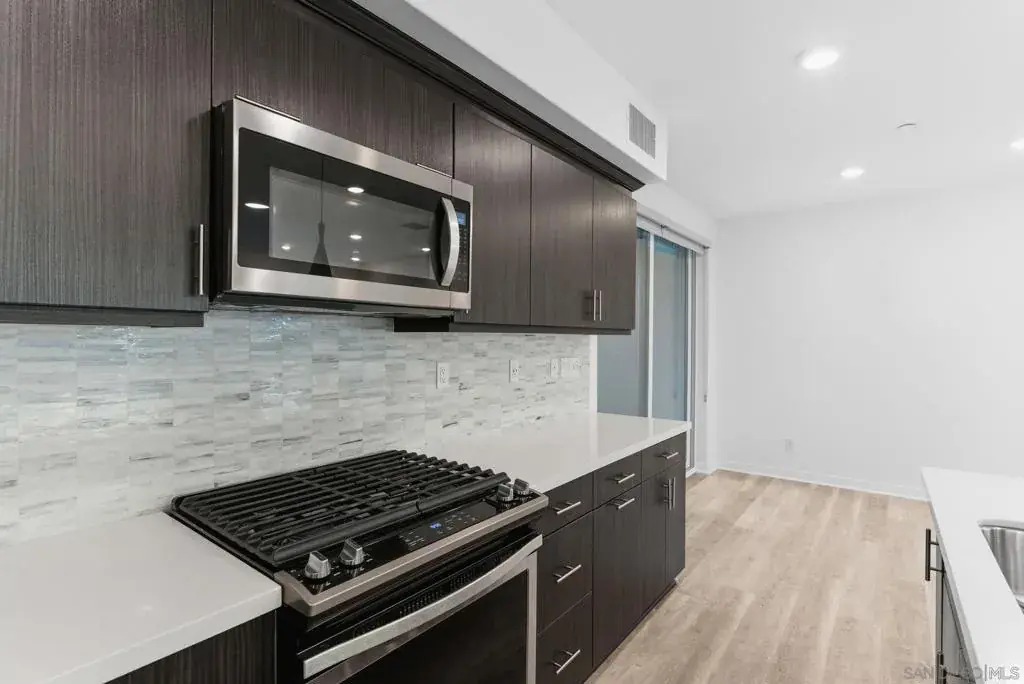 3-bed 3-bath | 1,515 sqft Home at Civita Promontory Community Welcome to this stunning home at the peak of Civita’s Promontory community, designed to live like a single-family residence with the convenience of luxury townhome living. Ideally positioned along the hillside, it offers exceptional privacy, abundant natural light, and Mission Valley views. Enter through the attached two-car garage to a welcoming foyer with a full bedroom and bath—ideal for guests, multigenerational living, or a private office. The main level features bright open-concept living with luxury vinyl flooring, premium finishes, and a wall of windows that opens to a private balcony. The upgraded kitchen showcases quartz countertops, stainless steel appliances, modern cabinetry, and designer lighting—perfect for everyday living and entertaining. Upstairs, two spacious ensuite bedrooms include a generous primary suite with walk-in closet and spa-style bath. A rare highlight: an exclusive private yard—one of only 20 in the community—offering no rear neighbors and enhanced privacy. Residents enjoy resort-style amenities including pools, fitness facilities, parks, and trails, all centrally located near Mission Valley shopping, dining, beaches, Mission Bay, and major freeways.