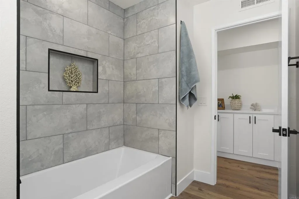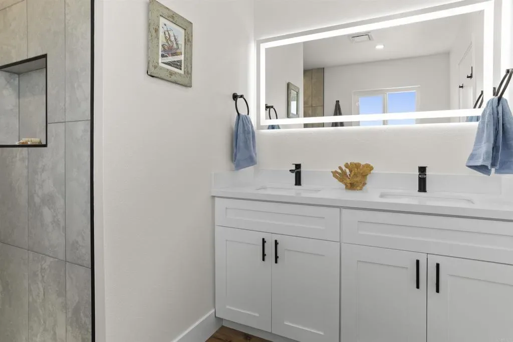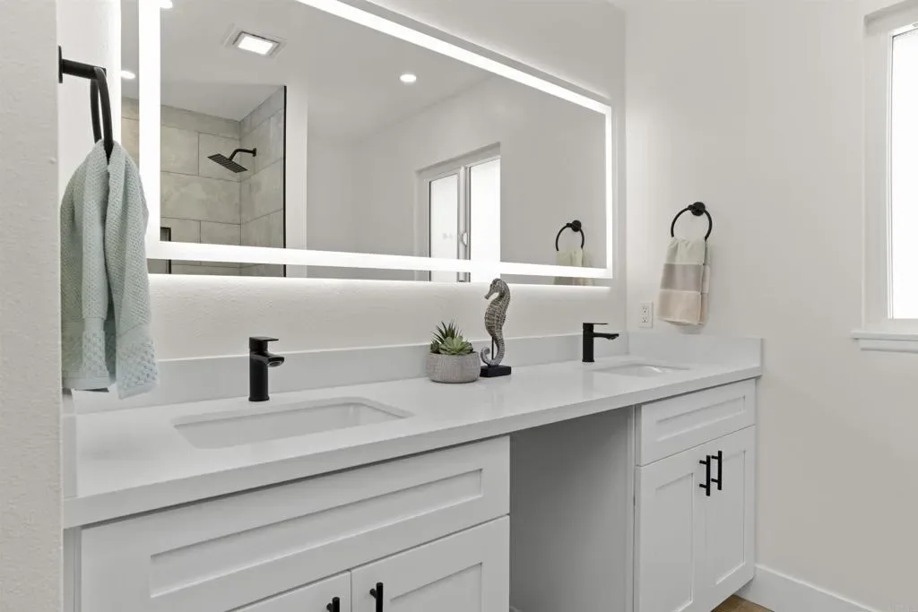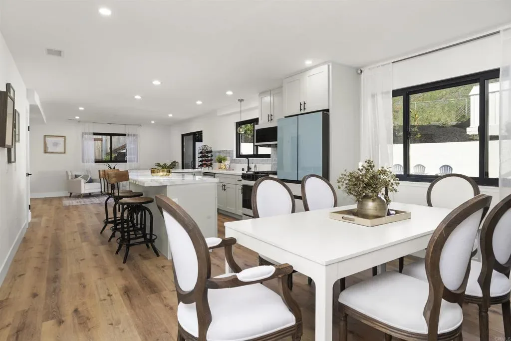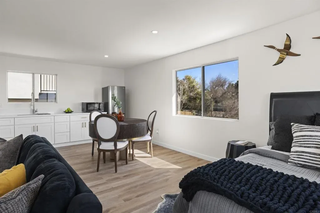 Stunning Bay Park View Property with Fully Remodeled Main Home + Detached Guest House Perched in the heart of Bay Park, this beautifully reimagined coastal property captures breathtaking panoramic views of Mission Bay and SeaWorld from both the main residence and the detached guest house. With five bedrooms and 3.5 bathrooms across two thoughtfully designed living spaces, this fully renovated property offers the perfect blend of modern luxury, versatility, and San Diego lifestyle. The home has undergone a complete top-to-bottom renovation including all new electrical and plumbing throughout, creating a truly turnkey living experience. The designer kitchen has been completely reconfigured and features WiFi-enabled Samsung Bespoke appliances, including a refrigerator with a built-in beverage center—perfect for entertaining or enjoying a refreshing drink while taking in the coastal views. A dramatic lighted Quartzite du island and fireplace create a stunning focal point in the main living space. Throughout the home you’ll find new flooring, beautifully upgraded bathrooms with LED mirrors, and an expanded laundry room designed for modern convenience. The detached ADU has been fully upgraded from top to bottom, offering its own remodeled kitchen, bathroom, laundry, and dedicated storage—ideal for guests, extended family, or rental income potential. Step outside to enjoy low-maintenance landscaping with drought-tolerant plants and turf in both the front and backyard, creating inviting outdoor spaces without the upkeep. Additional highlights include owned solar, maximizing energy efficiency and long-term savings. Located in one of San Diego’s most charming coastal neighborhoods, this home is within walking distance to Mission Bay Park’s playgrounds, waterfront paths, and recreational activities, as well as the new trolley station for convenient access throughout San Diego. The property is also centrally located near major freeways, shopping, dining, and the coast—making it easy to enjoy everything San Diego has to offer. This rare Bay Park property combines spectacular views, high-end finishes, flexible living spaces, and an unbeatable location—a true coastal retreat in one of San Diego’s most sought-after communities