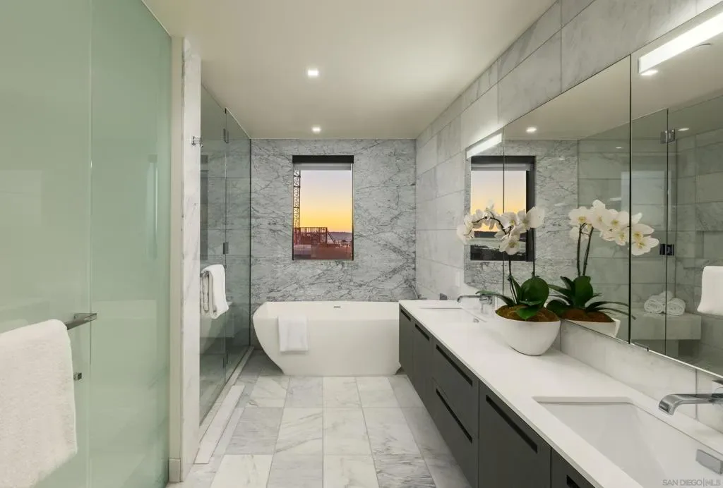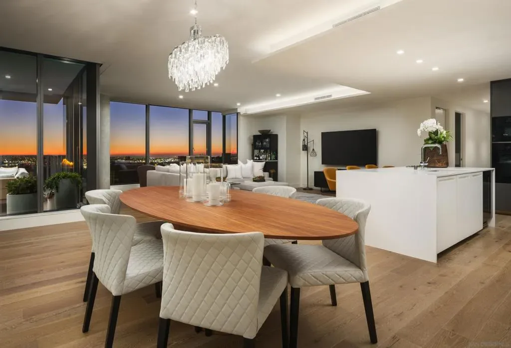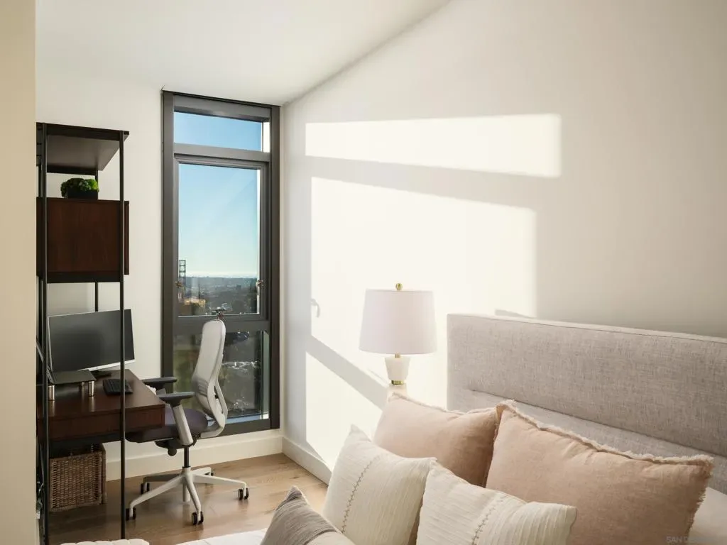Introducing a truly rare offering at The Park, Bankers Hill, San Diego’s premier address for luxury living. Residences of this caliber and prestige seldom become available, making this an exceptional opportunity to own within one of the city’s most exclusive and tightly held communities. Arrive via your direct access elevator into a luminous residence spanning approximately 2,385 square feet, where floor to ceiling walls of glass dissolve the boundary between interior and exterior living. Positioned on a coveted upper level northwest corner, the home is enveloped in natural light and framed by breathtaking panoramas that stretch from the glittering San Diego Bay to the vibrant downtown skyline. An expansive 320 square foot terrace extends the living experience into the open air, creating a seamless setting for both relaxation and refined entertaining. Here, golden sunsets unfold nightly as the city glows below. Gather for evening cocktails beside the Valakas marble clad fireplace or host intimate dinners with the convenience of your private gas barbecue, all from the comfort and privacy of your own covered terrace. Outdoor living of this caliber is a rarity in high rise design and elevates the residence to an exceptional offering. Designed for elevated daily living and entertaining, the chef’s kitchen is a modern statement. Outfitted with top-tier Miele appliances, sculptural Italian Boffi cabinetry, and a dramatic Caesarstone quartz waterfall island, the space is as functional as it is visually striking, perfect for intimate evenings or grand, unforgettable gatherings. The primary suite is a serene and luxurious sanctuary, thoughtfully designed to evoke a sense of calm and refinement. The spa inspired bath is wrapped in an exquisite Asian Statuary bookmatched marble slab, featuring a deep soaking tub, frameless glass shower, and dual vanities. A custom walk-in wardrobe completes the suite, seamlessly blending impeccable organization with elevated design, and features an additional closet thoughtfully dedicated to accessories. Each additional bedroom offers its own sense of privacy and comfort, with well appointed en suite baths and flexible use as guest accommodations, a private study, or an elegant media lounge, ensuring the residence adapts seamlessly to your lifestyle. The residence is complete with two side by side parking spaces and an oversized private storage unit, all within a secure, architecturally significant building that sets the standard for luxury living in Bankers Hill. Life at The Park is defined by a level of service and amenity rarely found in San Diego. Residents enjoy access to a resort inspired pool and spa, a state of the art fitness center with a dedicated yoga studio, a sophisticated clubroom, and an outdoor owner’s lounge with fire pits, barbecues, and intimate seating areas for both entertaining and quiet retreat. A temperature controlled wine room, pet spa, and two fully furnished guest suites complete with kitchens are available for five nights a month for a nominal $275 cleaning fee. Set moments from Balboa Park and the cultural, culinary, and coastal attractions of San Diego, this home offers a lifestyle that is both vibrant and effortlessly refined. Opportunities to acquire a residence of this caliber within The Park are exceptionally limited, especially one that captures such commanding views, scale, and privacy, making this a truly singular offering for the most discerning buyer.