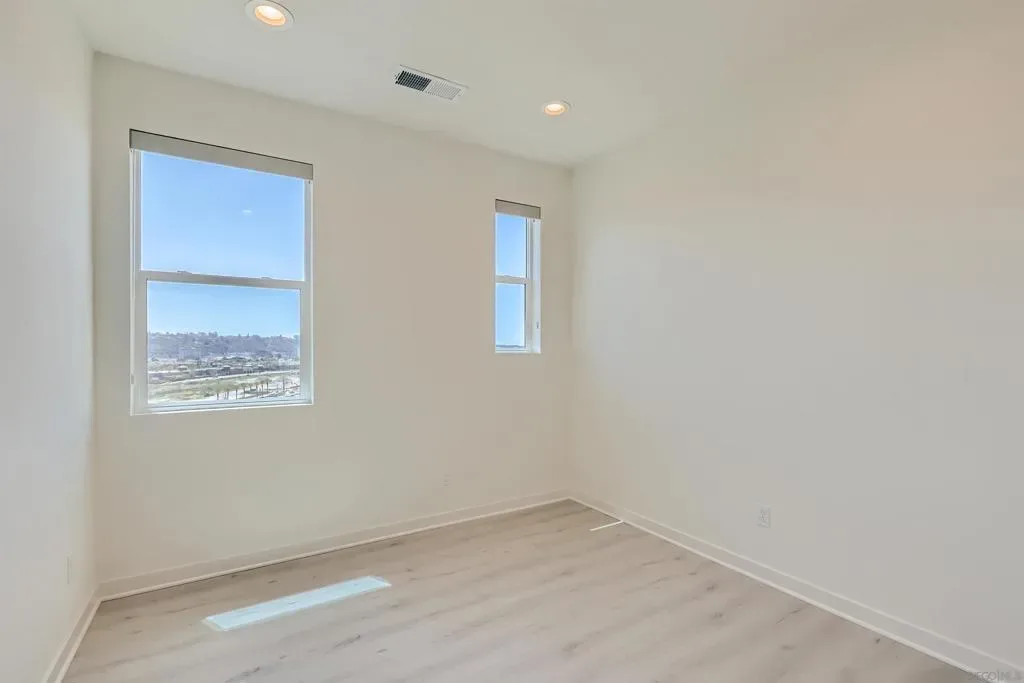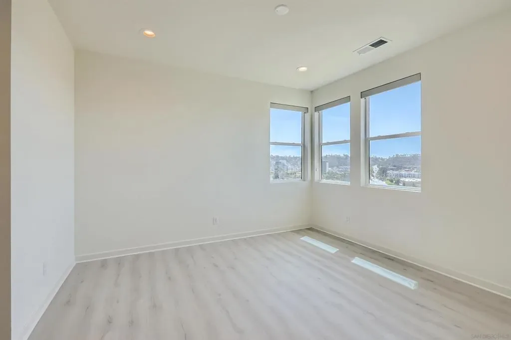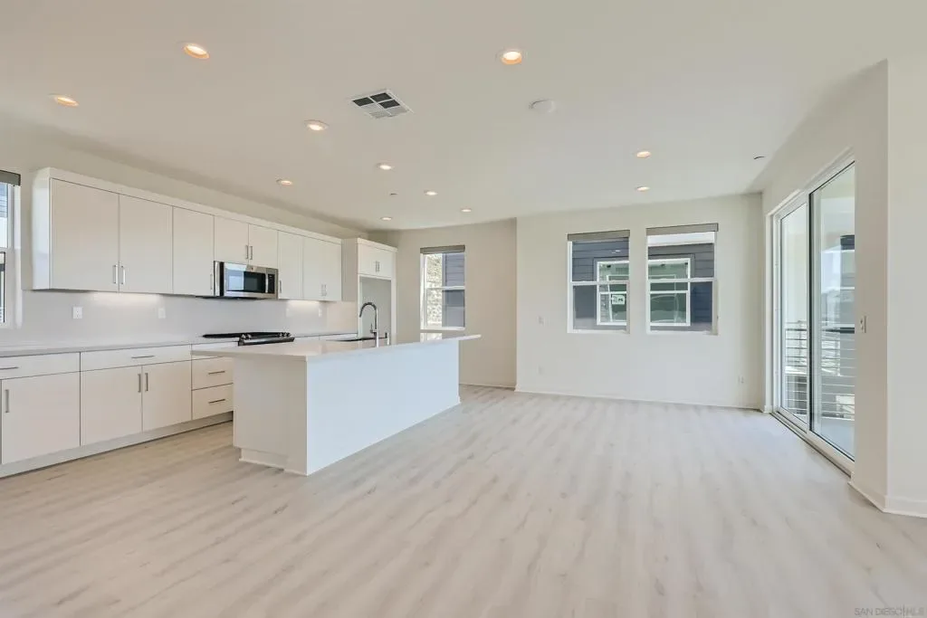 Stunning Corner Townhome in Marquee at Civita with Panoramic Mission Valley Views! Rare opportunity to own a 3-bedroom, 2.5-bath corner townhome in Marquee at Civita, one of Mission Valley’s most sought-after neighborhoods. Built in 2022, this light-filled residence offers panoramic views, a premium corner location, and a highly desirable floor plan that rarely becomes available in this community. Designed for modern living, the home features approximately 1,570 square feet of thoughtfully upgraded interior space, including luxury vinyl plank flooring, tiled bathrooms, upgraded lighting, and custom light-filtering roller shades. The modern kitchen is beautifully appointed with quartz countertops, full-height backsplash, and premium stainless steel appliances, while the spacious private balcony offers the perfect place to relax and enjoy the views. An oversized attached 2-car garage includes epoxy flooring, ceiling-mounted storage racks, and a flexible bonus space ideal for storage, a hobby room, or home gym. Additional conveniences include an upper-level laundry area with full-size washer and dryer. This smart home also allows you to control the front door, garage, lighting, and A/C directly from your smartphone. Residents of Civita enjoy access to resort-style amenities including pools and spas, a two-story fitness center, parks, play areas, a community garden, and splash pad, all just minutes from shopping, dining, Fashion Valley, downtown San Diego, and major freeway access.
