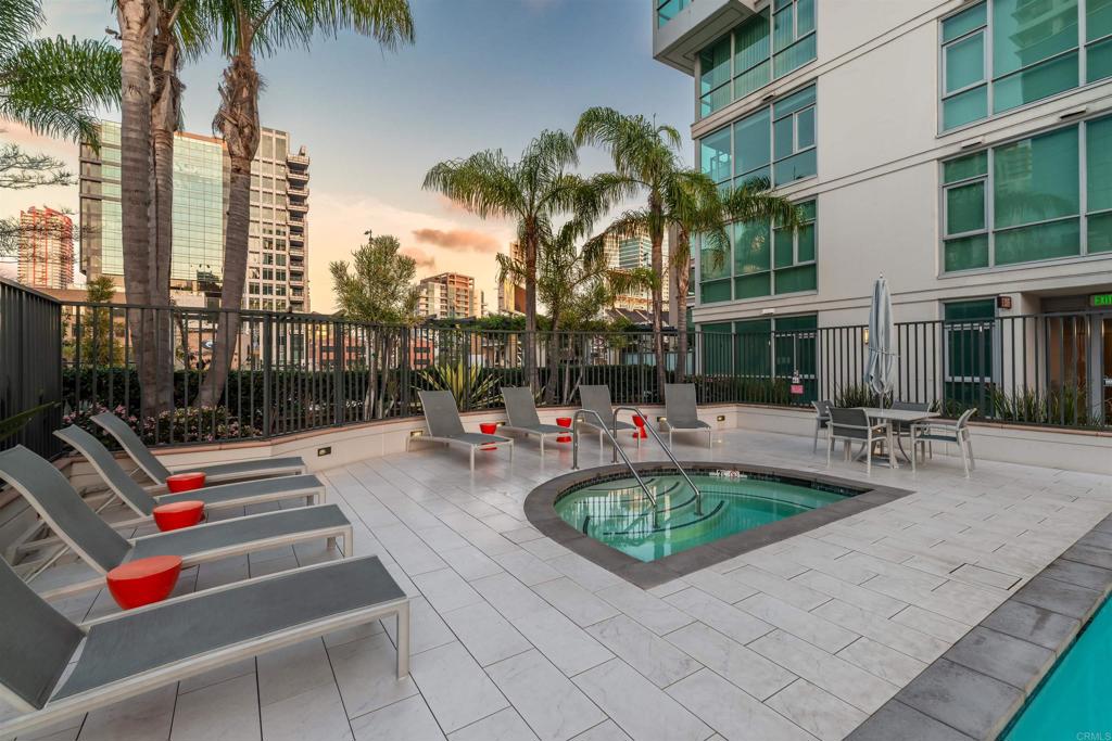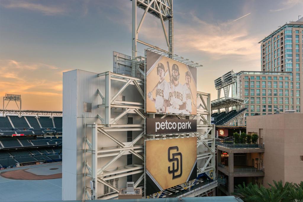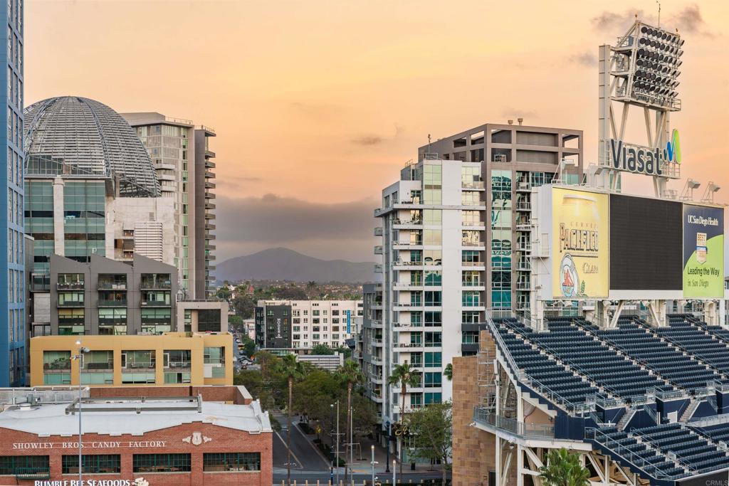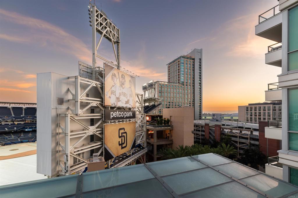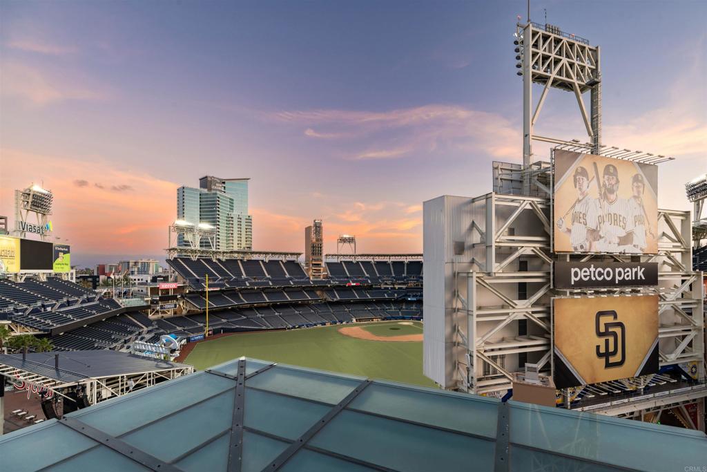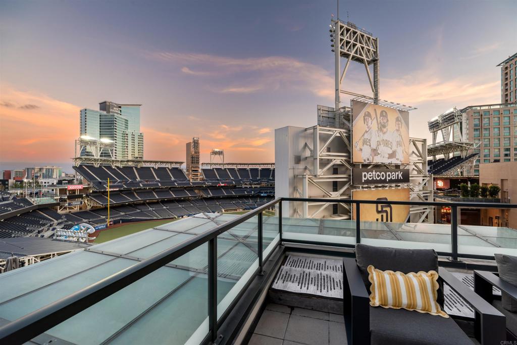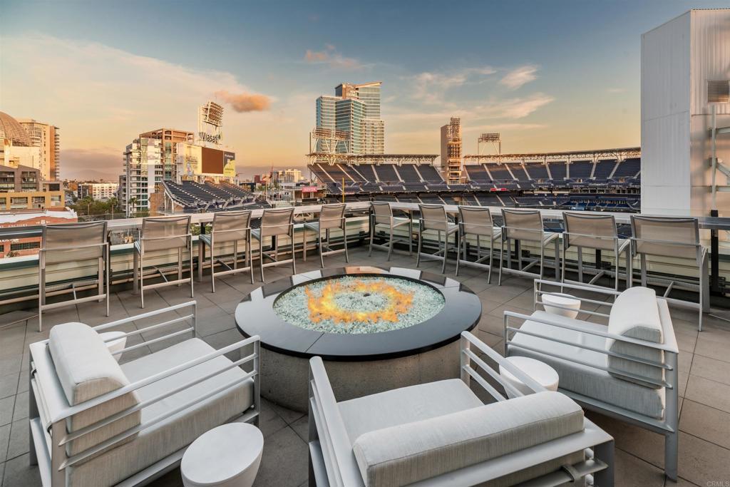 Perched above Petco Park inside the iconic The Legend, this extraordinary 2-bedroom, 2-bath residence offers one of the most coveted and truly one-of-a-kind outdoor spaces in all of Downtown San Diego. The showpiece of the home is an expansive private terrace—one of the largest in the building—positioned directly above the stadium with jaw-dropping views into home plate and over Gallagher Square. From this unmatched vantage point, you can watch the energy of the game unfold while enjoying the comfort and privacy of your own luxury residence—an experience few properties in the city can offer. Designed for unforgettable entertaining and effortless indoor-outdoor living, the terrace is a true extension of the home. Host game-day gatherings, relax beside the fire feature, or enjoy a cold drink while watching the San Diego Padres take the field—this is San Diego living at its most iconic. An outdoor bar with keg system, beverage refrigerator, and additional storage elevates the space even further, creating what may be the ultimate private viewing lounge in the Ballpark District. Inside, the residence has been thoughtfully upgraded with refined finishes and modern comforts throughout. The remodeled interior features updated countertops, custom lighting, built-in cabinetry and bench seating, a sleek fireplace, and a Murphy bed that provides flexible living space for guests or a home office. A Nest HVAC system adds smart climate control, while large windows frame the surrounding cityscape and bring natural light into the open living areas. Residents of The Legend enjoy resort-style amenities including a rooftop deck overlooking the ballpark, pool and spa, outdoor kitchen and BBQ area, fire pit lounge, fitness center, 24-hour concierge, and secured entry—all just steps from the vibrant restaurants, nightlife, and waterfront experiences that define Downtown San Diego. The home also includes one underground secured parking space and a dedicated storage unit, completing this exceptional offering. With a terrace and stadium view that are nearly impossible to replicate, this residence represents a rare opportunity to own one of the most distinctive and sought-after condos in Downtown San Diego.