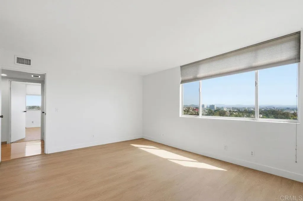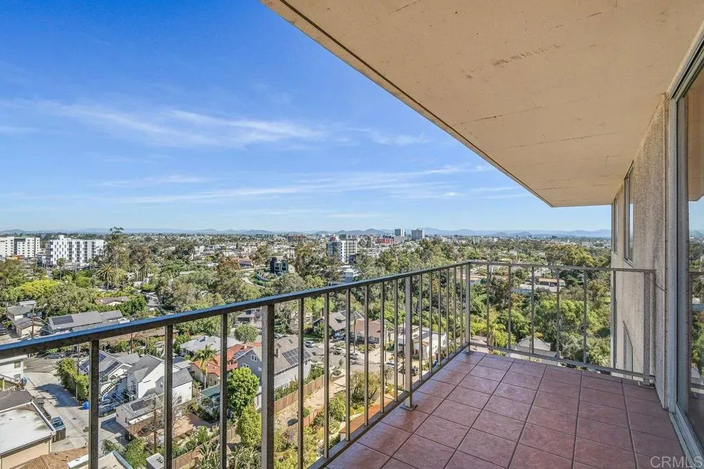 Welcome to this bright and spacious condo in the desirable Coral Tree complex, just minutes from Balboa Park and Hillcrest. Located on the 13th floor, this light-filled home showcases sweeping northeast-facing views of the mountains and city skyline. The open-concept living and dining area is accented by polished hardwood floors that bring warmth and character throughout. A retro-inspired kitchen with a breakfast bar. Both generously sized bedrooms with NEW flooring offer stunning views, with the primary suite featuring a walk-in closet and en-suite bath. Additional conveniences include in-unit laundry, full size storage room, and two side by side parking spaces located near the elevator. Coral Tree residents enjoy resort-style amenities including a pool, spa, tennis courts, and a clubhouse with a full kitchen, fireplace, and pool tables—perfect for entertaining or relaxing close to home. This home is ready for someone to make it their own!