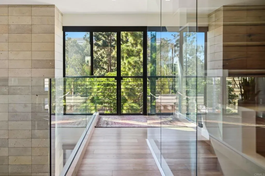 This architecturally striking corner residence and former model home, positioned between Hillcrest and Bankers Hill, was designed to support an active, walkable lifestyle. Extensively customized by its current owner, the home is defined by walls of glass that bring in natural light and create a constant connection to the outdoors. Access the home through one of two secured pedestrian gates or the attached 2-car garage. The entry level features a bedroom with an ensuite bathroom. The second floor serves as the home’s social center. The kitchen is anchored by a dramatic island wrapped in honed quartzite, designed for meal prep and dining. Professional appliances include a Wolf five-burner gas cooktop, Miele convection oven, microwave, dishwasher and built-in coffee machine, custom Vent-A-Hood, The Galley sink, and Sub-Zero refrigerator. Dual Sub-Zero freezer drawers and a Monogram Reserve wine refrigerator are integrated into the island. The living room features a gas fireplace, built-in storage with illuminated shelving, and a chandelier highlighting the two-story volume. A built-in bar with a second refrigerator and a powder room enhances entertaining. The large balcony extends the living space outdoors. The third level offers a full bathroom and loft with built-in credenza, currently used as an office with potential for a third bedroom. The top level is dedicated to the primary suite, featuring a gas fireplace, custom built-ins, walk-in closet, gorgeous bathroom, laundry closet and multiple balconies. Additional upgrades include Du Chateau flooring, automated shades, whole-house sound with security, water softener and reverse osmosis system, Navien tankless water heater, and a new HVAC system with integrated air purification. Located in Quinteza, a five-unit detached condominium community along the parade route to Balboa Park, the home offers a unique vantage point for events. Park the car and enjoy one of San Diego’s most walkable locations.