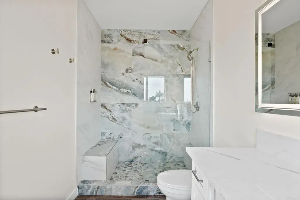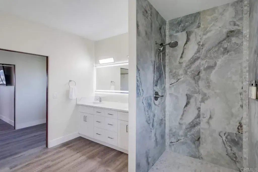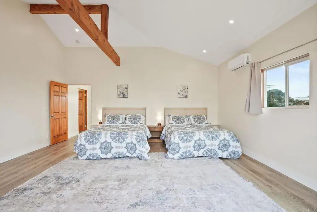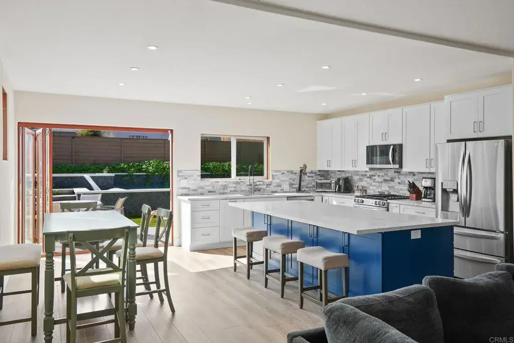 A true entertainer’s retreat in the heart of Point Loma, offering resort-style living rarely found in the area. This recently renovated 2,522 sq ft residence features four generously sized bedrooms and four full bathrooms, thoughtfully designed for both everyday comfort and large-scale entertaining. The interior showcases high-end, durable finishes throughout, delivering a clean, modern aesthetic built for long-term living. An open-concept floor plan flows seamlessly from the living room into the kitchen, anchored by expansive folding glass doors that open to the outdoors and create a seamless indoor-outdoor living environment. Bedrooms are notably spacious, including a private primary suite that serves as a true retreat, complete with a luxury soaking tub and direct access to an oversized balcony. From this elevated vantage point, enjoy sweeping views of the Downtown San Diego skyline – an impressive backdrop both day and night. The backyard is the centerpiece of the property, featuring a large resort-scale pool and spa-style hot tub with ample space for outdoor dining, lounging, and gatherings. Designed for year-round enjoyment, the outdoor areas function as a true extension of the home, delivering a level of privacy and lifestyle appeal rarely available in Point Loma. Ideally located just minutes from SeaWorld San Diego, Liberty Station, waterfront dining and marinas, Sunset Cliffs Natural Park, San Diego International Airport, and Downtown San Diego, the home is perfectly positioned to offer exceptional convenience without sacrificing privacy. Additional features include a one-car garage and thoughtful design elements that support full-time living, extended stays, or multigenerational use. Homes offering this combination of square footage, renovation quality, skyline and ocean views, and a true resort-scale pool in Point Loma are rarely available. For additional context, the property has been successfully operated as a high performing short-term rental.