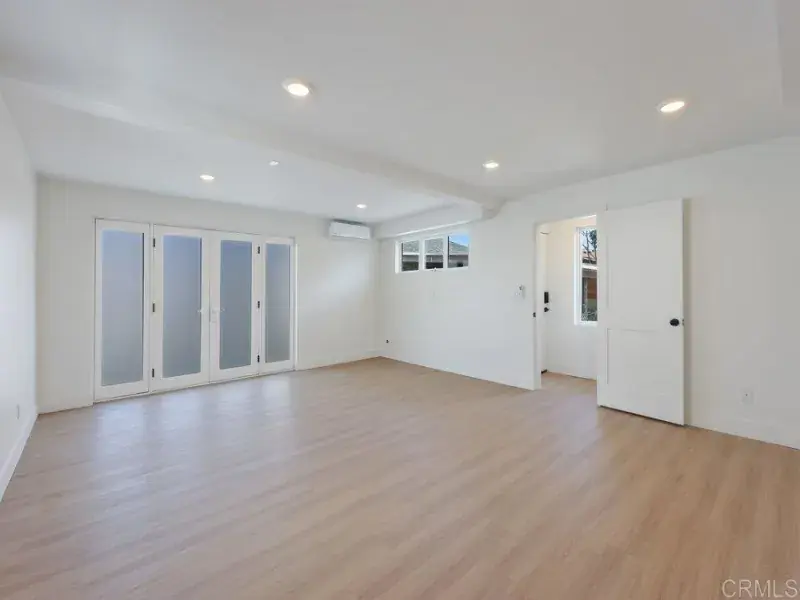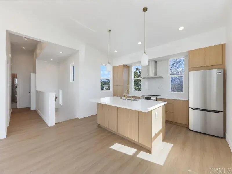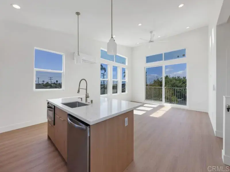 Detached 3 Bedroom 1 Bath Residence in Bay Park This is a detached 3-bedroom, 1-bathroom residential unit completed in 2025. This structure is located on the rear portion of a lot in the 92117 area. The interior features a two-story floor plan. The first level consists of one bedroom with an independent exterior entry point and an interior door connecting to the rest of the unit. The second level contains two additional bedrooms, one bathroom, a kitchen, and a living area. The flooring throughout the residence consists of hardwood. The kitchen includes a central island with stone countertops. Appliances include a stainless steel refrigerator, stove, dishwasher, and microwave. An interior laundry area is equipped with a washer and dryer. The ceiling height on the upper level is 10 feet. Windows are double-pane throughout. The residence is equipped with central air conditioning and a central heating system. Interior lighting is provided by recessed LED fixtures. The property is situated at an elevation that permits sightlines of Mission Bay and the Pacific Ocean. Local fireworks displays are visible from the property. The distance to Mission Bay Park is one and a half miles. Access to the Interstate 5 corridor and the San Diego International Airport is within five miles.
