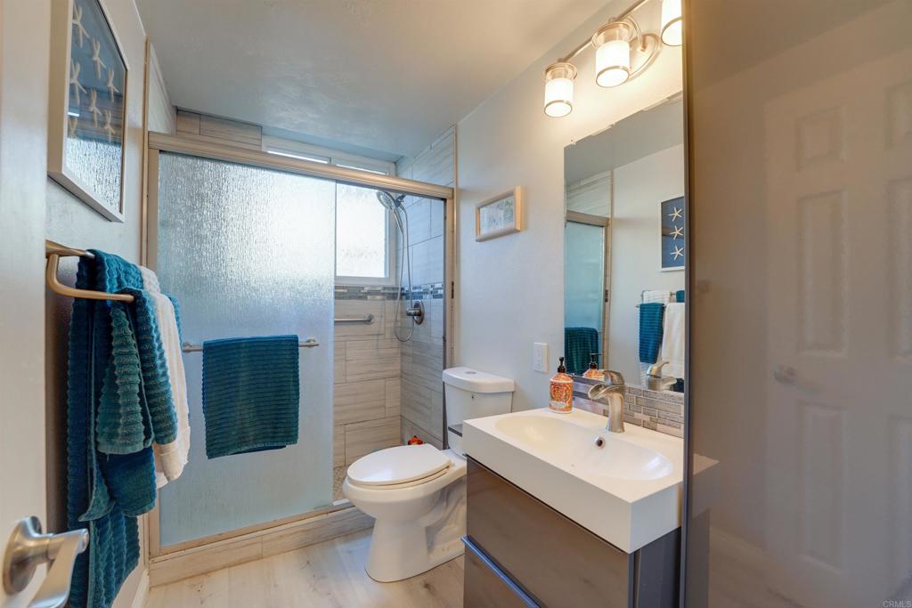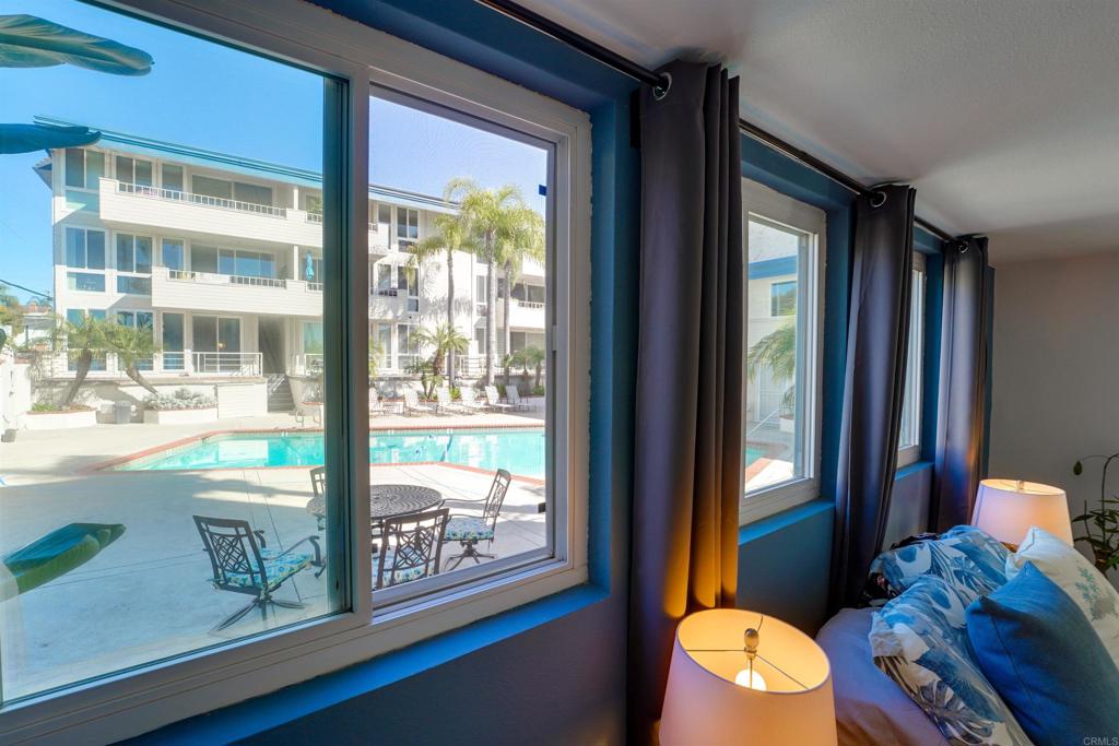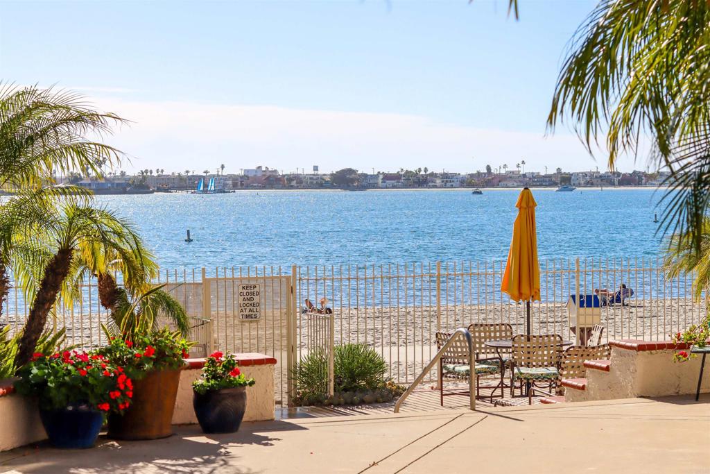 Welcome to Riviera Shores on Sail Bay, where waterfront tranquility meets the best of Pacific Beach living. This rare ground-floor 3BR/2BA condo is just steps from the sand and offers the ease of single-level living with no interior stairs. Bright corner windows frame beautiful bay views from the living and dining areas, while the spacious layout includes an updated kitchen, new LVP flooring, dual-pane windows and sliders, a generous primary suite, and two tastefully remodeled bathrooms with walk-in showers. The oversized covered patio creates seamless indoor-outdoor living and a front-row seat to the Sail Bay lifestyle. Residents enjoy a sparkling community pool, covered parking, in-unit laundry, and direct access to the scenic boardwalk stretching around the bay toward Crown Point and beyond. A rare chance to own a spacious bayfront home in one of Pacific Beach’s most desirable settings.