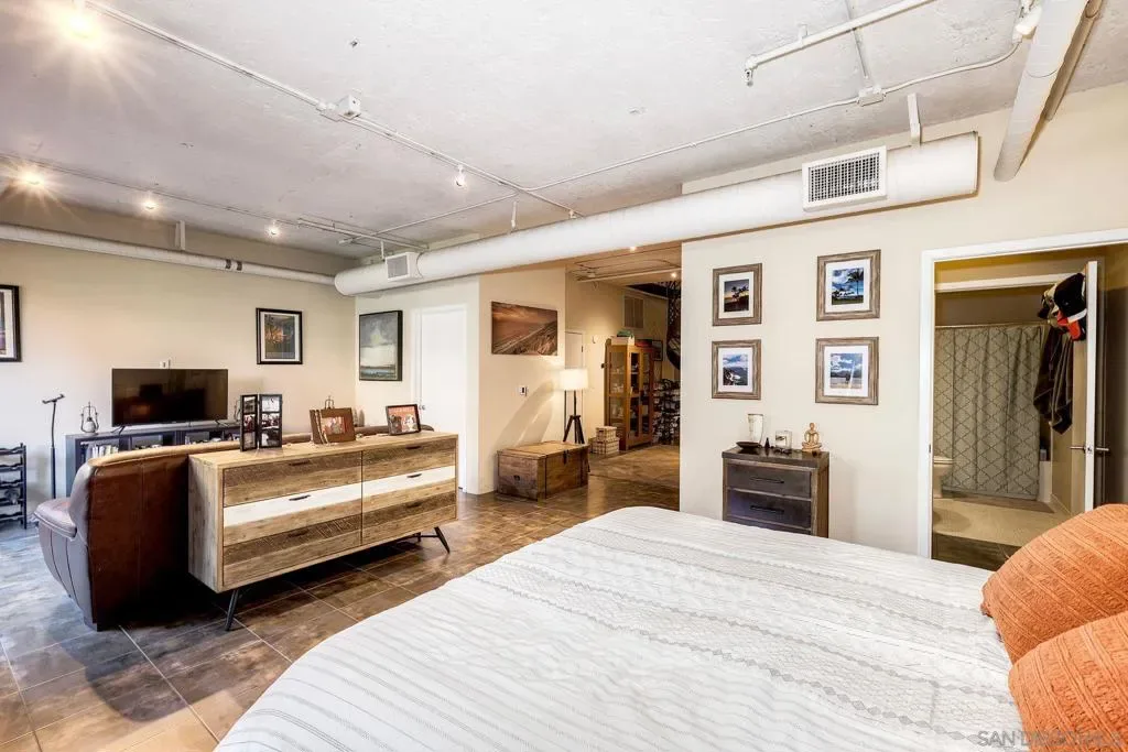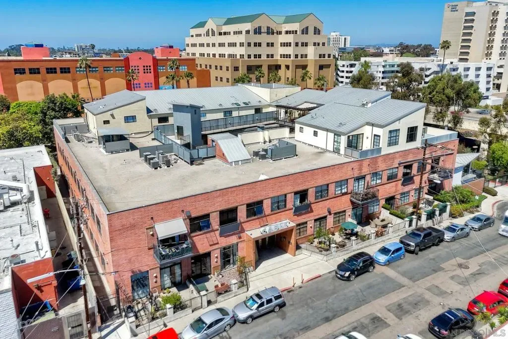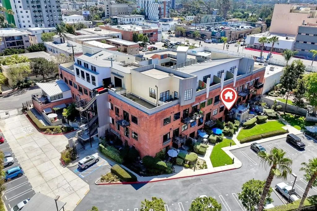 Welcome to your urban oasis in the heart of Hillcrest! This contemporary 1,813 sq. ft. loft-style condo offers a perfect blend of sophistication, flexibility, comfort and unbeatable convenience—a block from Whole Foods and downtown Hillcrest, also just minutes from the freeway and 4 miles to San Diego International Airport. This unique residence is currently a 1-bedroom with the option to convert to a 2-bedroom, giving you the freedom to customize the space to fit your needs. Spanning two levels, the open-concept design showcases soaring ceilings, exposed brick and concrete and expansive windows that fill the home with natural light. The main level features a spacious living room, dining area, a well-appointed kitchen, a half bathroom and a private balcony. Upstairs enhancements include electric window shades and a motorized retractable patio awning for added comfort and convenience. A spiral staircase leads to the lower level which includes a large bedroom with ensuite, that can be converted to two separate bedrooms, each with patio access, if desired. This level includes another full bathroom, a dedicated laundry room and bonus space perfect for a home office, library or fitness area. Two sets of French doors open to a large private patio that flows seamlessly to the community’s lush greenbelt—creating an indoor-outdoor living experience that’s rare for urban living. The downstairs windows and doors also feature electric shades. The HOA dues include exterior building and common area maintenance, insurance, trash and recycling, water and sewer and fiber optic internet. Located in the iconic Cable Building—a former Pacific Bell telephone switching station—this gated and secure community blends historic charm with modern luxury and features both designated underground parking with electric car charger and an additional exterior reserved parking spot. Experience the character, versatility and lifestyle this one-of-a-kind home has to offer.