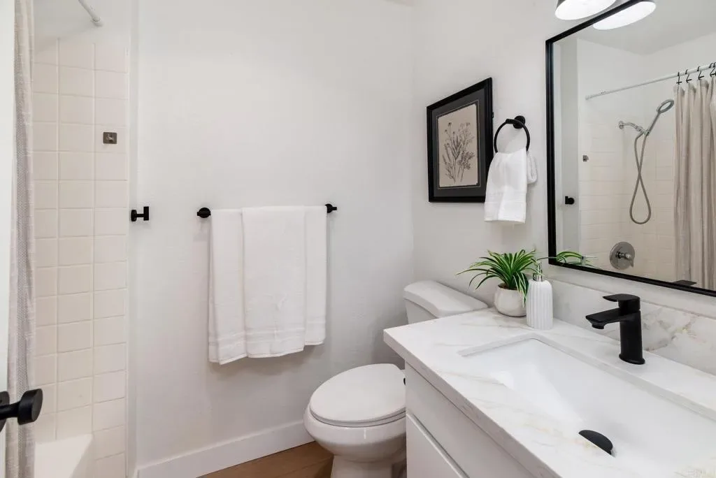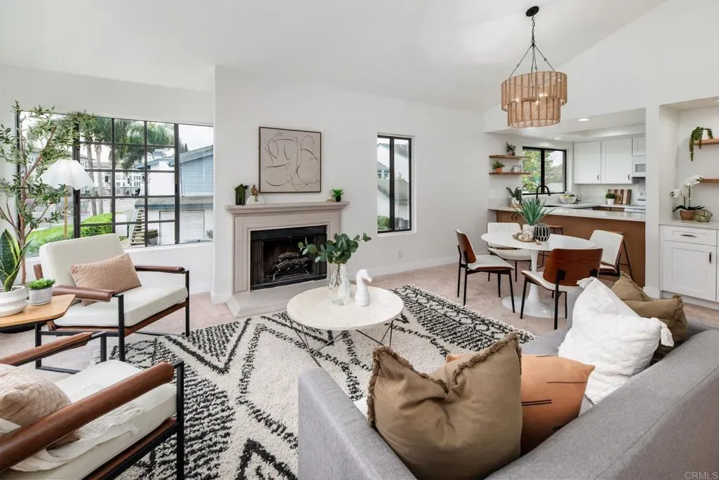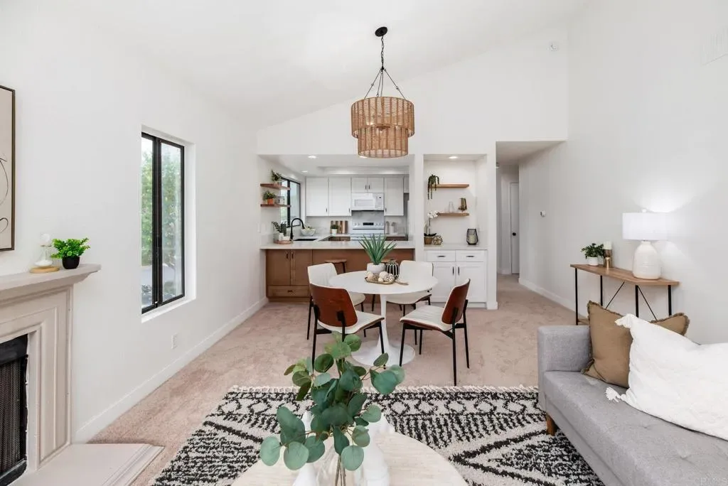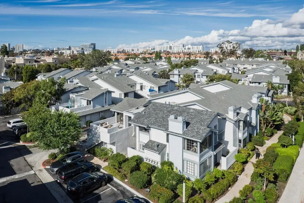Tucked within the highly sought-after La Jolla Village Park community, this beautifully refreshed end-unit residence offers an exceptional blend of privacy, natural light, and outdoor living. With only one shared wall and no neighbors above, the home lives peacefully while remaining just moments from the best of La Jolla and University City. Vaulted ceilings and expansive windows fill the home with natural light, creating an airy, welcoming atmosphere throughout. A thoughtfully redesigned kitchen, completed in December 2025, serves as the heart of the home with timeless shaker cabinetry, quartz countertops, new appliances, and a raised ceiling with modern can lighting that enhances both style and functionality. Recent updates continue throughout the home, including refreshed primary and guest bathrooms with quartz countertops, updated fixtures, and painted cabinetry. The main living areas feature updated flooring, while brand-new plush carpeting creates comfortable and inviting retreats. Fresh interior paint, updated lighting, and new vanity countertops, hardware and mirrors complete the move-in-ready feel. One of the home’s most standout features is its exceptional outdoor living. Two private patios surrounded by greenery offer abundant sunshine and the largest private outdoor space in the community, perfect for morning coffee, hosting friends, or simply unwinding at the end of the day. Additional highlights include spacious bedrooms, a private one-car garage with storage located conveniently at the base of the stairs, and an additional parking space. Residents of La Jolla Village Park enjoy resort-style amenities including a pool, spa, lighted tennis courts, racquetball courts, and beautifully maintained grounds. Low HOA dues cover water, sewer, trash, exterior and roof maintenance, pest control, and more. The community also completed a new roof on this unit in 2025 with a full exterior community refresh planned for 2026. With a Walk Score of 84 and close proximity to UCSD, UTC Mall, Whole Foods, Trader Joe’s, beaches, parks, hiking trails, major employers, and multiple freeways, this home offers the perfect balance of comfort, convenience, and the lifestyle that makes San Diego so special.