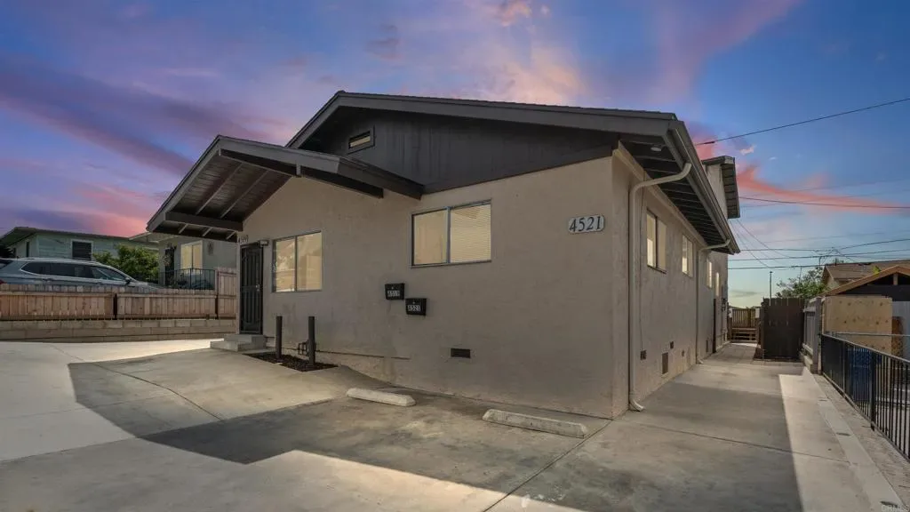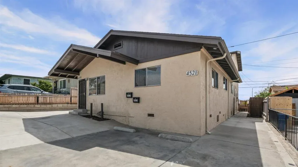 Welcome to 4519 (a 1-story) and 4521 (a 2-story) G Street in San Diego! Both units have been renovated from top to bottom, with brand new electrical and plumbing systems, new panels, and all new fixtures. The driveway is fully concrete, with each unit having its own dedicated space. Unit 4519 is a 1-story, 3-bedroom, 1-bath home with a tile kitchen, updated cabinets, a spacious bathroom with a tub, and double entrances. Unit 4521 is a 2-story, 4-bedroom, 2-bath home with a cozy fireplace, a walk-in pantry, and a beautifully remodeled kitchen with an island. Both units feature new vinyl floors in the bedrooms and tile floors in other living areas, fresh paint, and upgraded bathrooms with tile showers. Each bedroom is spacious and filled with natural light. Live in one unit and rent out the other for extra income! No HOA fees and no Mello-Roos. Both units have storage sheds and maintenance free yards. This is a turnkey opportunity close to schools, shopping, public transportation. You also have easy access to the 805 & 94 freeways. Just Minutes from Petco Park & Downtown San Diego. Don’t miss out!