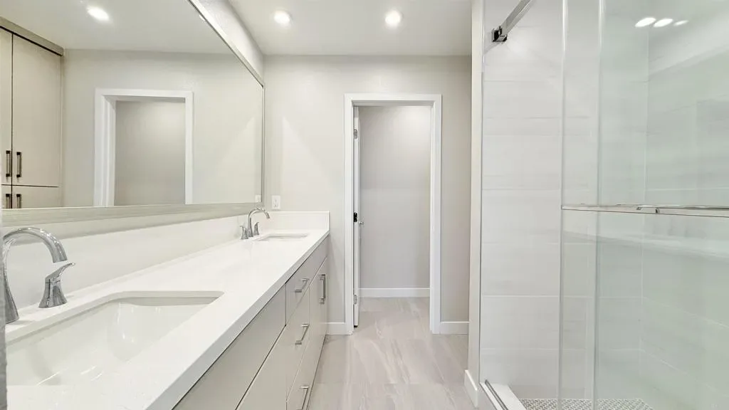LUXURY + OPEN FLOOR PLAN + INDOOR OUTDOOR LIVING + DESIGNER UPGRADES. PRIME LOCATION – Beautiful brand new construction 3-story townhome in the newly built Mira Vista community. – Minutes to Mission Bay, Pacific Beach, La Jolla, Downtown and the airport. – Exceptional home design with thoughtful layout. – Entry level offers a private bedroom suite, ideal for guests or extended family. – Main level features open modern living space with covered balcony. – First-floor outdoor patio, perfect for relaxing, entertaining and enjoying the coastal breeze. – Great room and covered balcony create seamless indoor and outdoor living. – Large open kitchen with large center island, connected to casual dining area. – Kitchen features stainless steel appliances, designer cabinets, quartz countertops in kitchen and bathrooms, and stylish kitchen backsplash. – Upgraded vinyl flooring on main level, upgraded tile and plush carpet. – Electrical and low-voltage upgrade packages included.