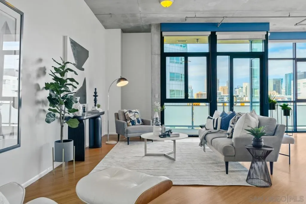 Rare corner unit with a wrap around patio in the highly desirable M2i building, located in East Village! Designed with an industrial flair, this unit features 11 foot ceilings and stunning floor-to-ceiling windows that flood the space with natural light all day long. With the potential to add an additional bedroom and the open layout, unit 503 offers flexibility for any buyer. Additional highlights include tandem parking, conveniently located on the 1st level, and a large storage unit. Residents of M2i enjoy access to a fully equipped remodeled gym, two lobbies, luscious courtyard, and a rooftop patio complete with a firepit, and BBQs. Don’t miss your chance to own this unique home in the heart of Downtown San Diego!