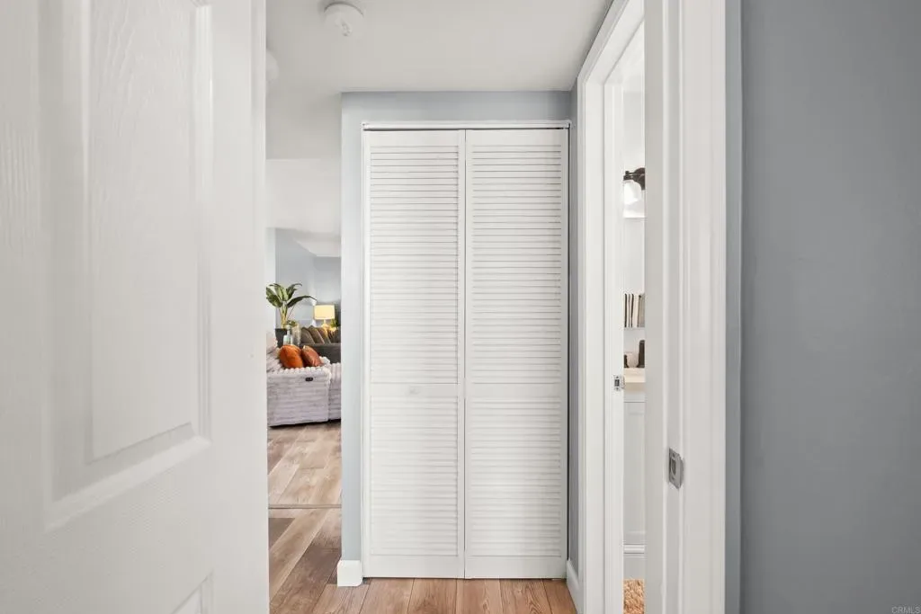 Tucked into a quiet cul-de-sac, this upgraded ground-level corner residence offers the perfect blend of privacy, comfort, and central convenience. With an abundance of natural light and an open, well-proportioned layout, the home feels both inviting and functional from the moment you walk in. Tastefully updated, the interior features hardwood flooring throughout, generously sized rooms, and ceiling fans in every space for added comfort. Central AC and heat ensures year-round efficiency. The kitchen has been refreshed with granite countertops, refinished cabinetry, and updated appliances, creating a clean and modern feel. Everyday living is made easy with an in-unit washer and dryer, along with a dedicated parking space and private storage closet. Residents also enjoy access to a community pool, perfect for relaxing on warm San Diego days. The HOA covers water, sewer, and trash, adding even more value and convenience. VA financing welcome, this is a great opportunity for a wide range of buyers looking for a well-located, move-in ready home.
