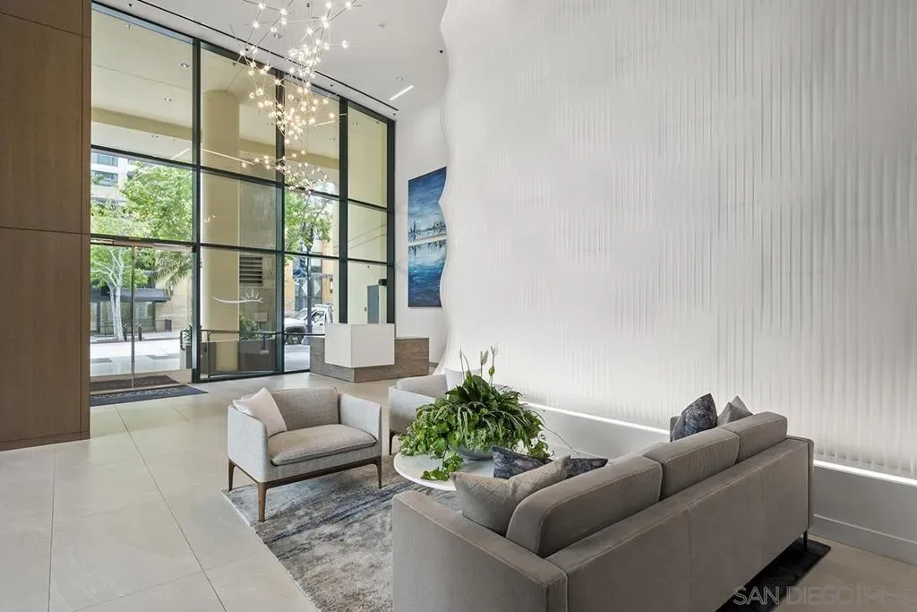 Sweeping panoramic bay and city skyline views define this beautifully remodeled Marina District residence. This spacious 2-bedroom, 2-bath home features two private patios ???????? positioned for stunning water views and seamless indoor-outdoor living. Over $200,000 in upgrades (2023) include custom cabinetry with expanded storage, continuous flooring, and updated lighting and plumbing fixtures. The redesigned kitchen offers quartz countertops, designer tile, a generous pantry, and high-end smart appliances, including an Alexa-enabled refrigerator and smart oven. Additional highlights include a custom walk-in closet, fireplace, blackout shades, Wi-Fi/Bluetooth color-changing ceiling lights, and two secured parking spaces, each with its own EV charger. A rare opportunity in the heart of the Marina District. Ideally located in the heart of the Marina District, Horizons offers an unbeatable downtown lifestyle just steps from the New Children’s Museum, Martin Luther King Jr. Promenade, Seaport Village, Petco Park, the Gaslamp Quarter, San Diego Bay, and the Marina. A children’s park and dog park are located directly behind the community. Resort-style amenities include a pool, spa, BBQ area, fitness center, concierge, security, billiard room, conference and club rooms, and 16 guest parking spaces. Everyday convenience is built in with retailers just an elevator ride away, including a bank, dry cleaner, Postal Annex, coffee shop, and more. The building has been refreshed with beautifully remodeled lobbies, upgraded hallways, and new unit doors with keypad access, all within walking distance to transit, dining, shopping, and Ralphs Signature Market.