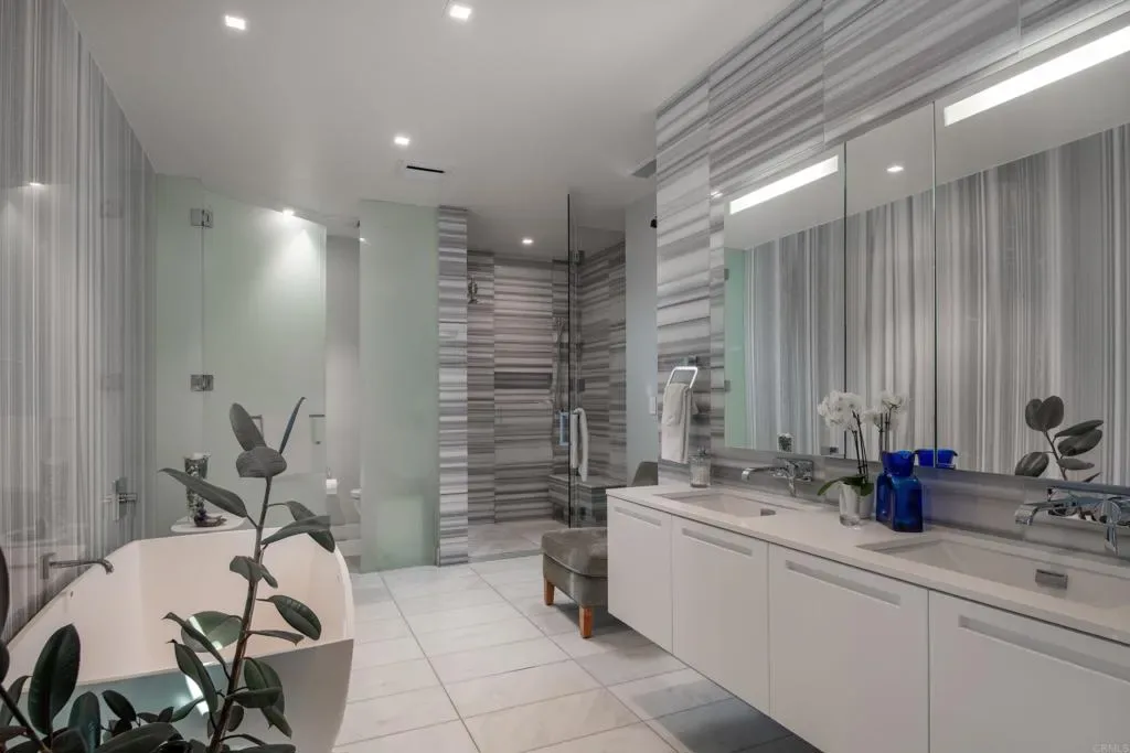 Newly updated and professionally designed interior accentuates the modern architecture in this stunning townhouse that lives like a single-family home. Plus, the added value of a ‘lock-and-go’ lifestyle, 24/7 front desk staff and access to luxury high-rise amenities. Experience sophistication & comfort in this rare offering – the largest townhouse at The Park Bankers Hill, one of San Diego’s most prestigious addresses. This contemporary townhouse features three levels serviced by a private elevator. Floor-to-ceiling glass windows on both the north and south sides fill the home with natural light, while floating staircases enhance the open, loft-like layout. The 1st floor features ceilings over 10 feet and serves as the main entertaining area, with an entry foyer, dining space, kitchen, powder room, living room, and a patio that opens to the house. On the 2nd floor: a guest bedroom, bathroom, den (which could be converted to a third bedroom), open office, and a wine or laundry room with existing hookups. The entire 3rd floor is dedicated to the primary suite, complete with a sitting area, ample closet space including a walk-in, separate laundry and a luxurious bathroom. The architect’s design concept was to ‘blur the sense of indoor/outdoor living’. Five outdoor terraces/patios that infuse San Diego’s sunlight & provide spaces for dining, entertaining, and a curated garden. Creston & Amazon Alexa fully automated Smart Home system conveniently operates lighting, Sonos audio, and solar window shades. The exterior is clad in glass, Volakas marble, and stamped concrete formwork to announce a sophisticated arrival. Sited across the street from Balboa Park’s 1,200 acres in the vibrant Bankers Hill neighborhood, this exceptional residence offers a unique opportunity to enjoy upscale urban living just steps away from renowned dining and the city’s cultural landmarks. The Park was completed in 2018 by DIALOG (architects), developer Zephyr, and contractor Balfour Beatty. Lavish amenities include 24/7 front desk staff, private lounge, conference/dining room, full event kitchen, wine room, gym, pool, BBQ, two guest suites, and a dog wash. The six townhomes at The Park complement the 14-story luxury tower comprised of 60 modern homes and 2 ground-level retail spaces. The townhouse has 2 parking spaces with an EV charger.