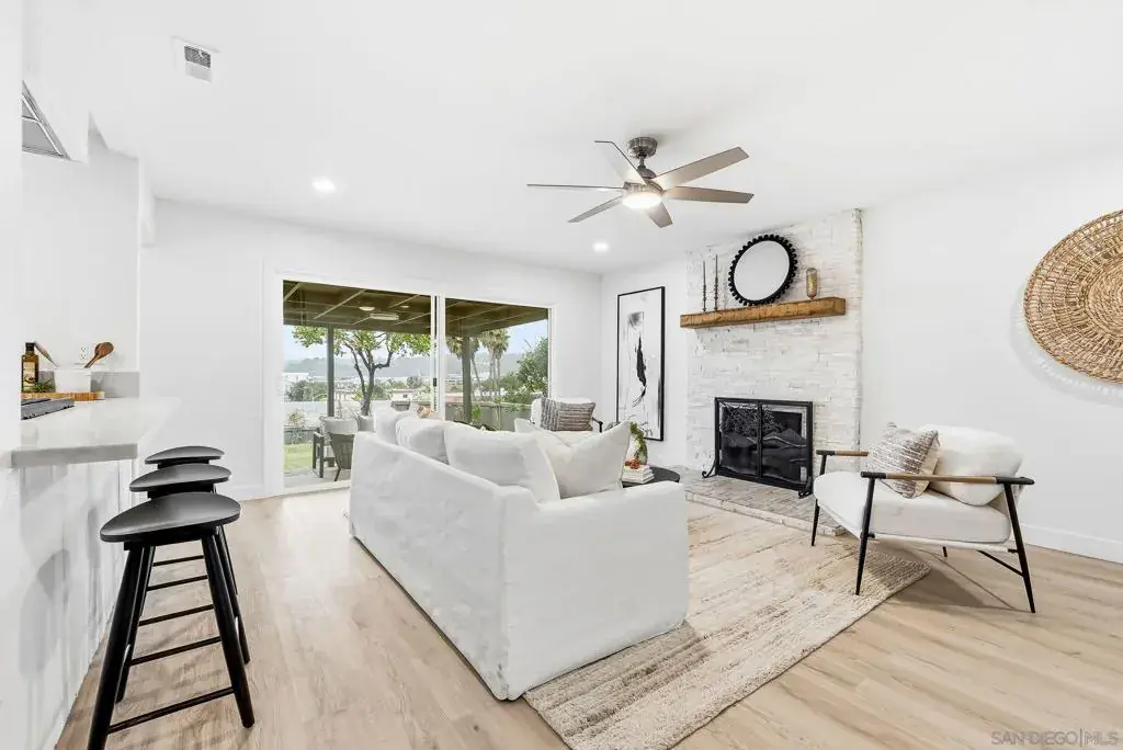 Don’t miss your opportunity to own this beautifully refreshed and move-in-ready turnkey home in the desirable Allied Gardens area of San Diego. Located near shopping, dining, top-rated schools, and with easy access to major freeways, this home offers both comfort and an ideal central San Diego location. Inside, the home has been thoughtfully updated with fresh interior and exterior paint, new hardwood flooring, upgraded baseboards, doors and trim, and stylish luxury lighting throughout. The fully remodeled kitchen features new cabinetry, quartz counters, and all-new appliances, while the bathrooms have been elevated with modern vanities, upgraded fixtures, and beautifully finished tile showers. The flexible layout includes an additional en-suite bedroom and convenient inside laundry. The functional layout opens to a flat, private backyard with fresh landscaping, a pebble walkway, and a new tile patio—ideal for relaxing and entertaining, complete with a built-in outdoor fireplace and tiled seating area. The primary bedroom offers an expanded walk-in closet and direct access to the backyard. Complete with covered carport parking plus space for 6–8 vehicles, scenic views from its corner lot positioning, and a true turnkey feel, this property stands out as an excellent opportunity you won’t want to miss.