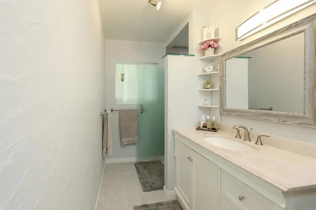 Beautifully upgraded corner-lot home in a prime location near San Diego State University. This exceptional property showcases lush, meticulously maintained gardens featuring a variety of exotic plants and mature fruit trees, including a producing passion fruit vine, kaffir lime, lemon, apricot, and fig. The home is equipped with a full Halo water filtration system, a demineralization system designed for San Diego’s hard water, and an energy-efficient recirculating tankless water heater. Upon entry, you’re welcomed by gleaming oak hardwood floors in excellent condition, creating a warm and inviting atmosphere. The custom kitchen features high-end cabinetry, designer lighting, marble and granite countertops, and a gas range—ideal for both everyday living and entertaining. A dedicated dining area with sliding glass doors opens to a serene, garden-inspired side yard. The spacious living/family room is filled with natural light, featuring expansive windows and sliding doors leading to a wraparound deck, perfect for indoor-outdoor living. An oversized fireplace serves as a stunning focal point while providing ample warmth on cooler evenings. The generously sized primary suite is bright and airy, complete with sliding doors that open to the deck. The remodeled primary bathroom offers a luxurious retreat, while the secondary bathroom maintains its classic charm. Two sheds for extra storage convey. This home combines comfort, character, and convenience with close proximity to shopping, dining, SDSU, and easy freeway access. A truly special property ready to welcome its next owner.