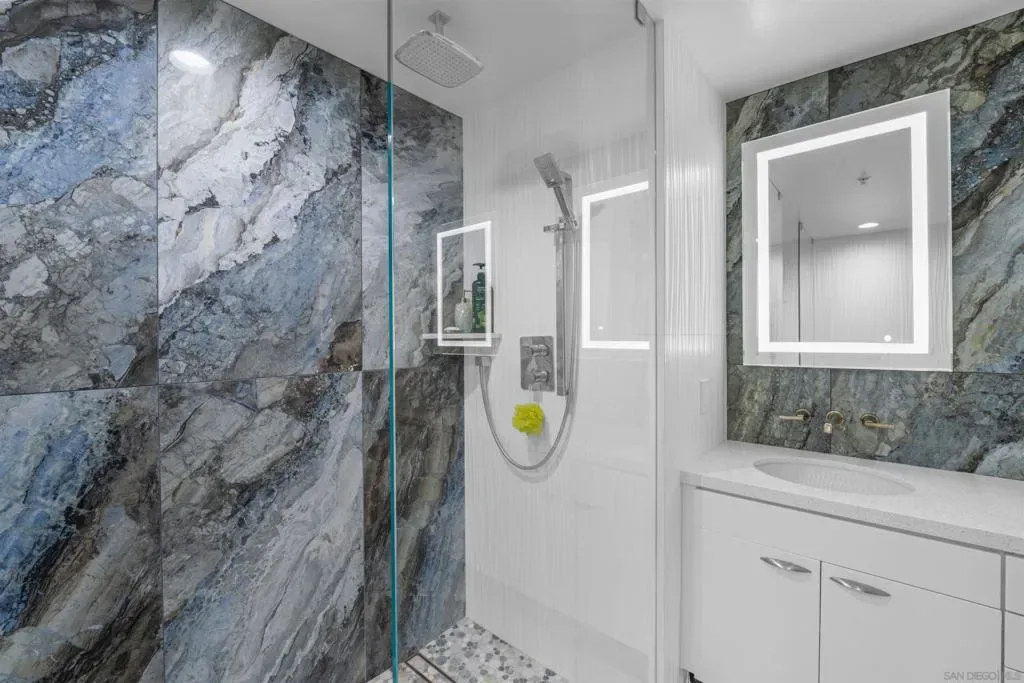 Located in the heart of the Marina District, this expansive one-bedroom residence features an open floor plan complemented by a private balcony that showcases dramatic, panoramic vistas. Provides flexibility for easily reverting the space to a two-bedroom layout. The kitchen is perfect for entertaining within the open-concept living and dining area. The primary suite serves as a true sanctuary, featuring a spa-like marble bathroom that is both luxurious and striking. Additionally, it boasts a walk-in closet and offers breathtaking views that greet you every morning. Renaissance has recently added a street-level lobby, new community lounges and provides an array of resort-style amenities, including 24-hour gated security, a front desk concierge, event spaces, and pool, spa, and barbecue areas. Residents love the convenience of the ground floor retail with Vitality Tap Juice Cafe, Postal Annex (convenient for dropping of Amazon returns), a massage salon, Vases nail salon and more. Enjoy the convenience of being just a short stroll away from an array of attractions including 14 acres at Seaport Village, the waterfront Rady’s Shell, Petco Park, 48 blocks of Little Italy, Gaslamp Quarter, and a host of exciting year-round events!