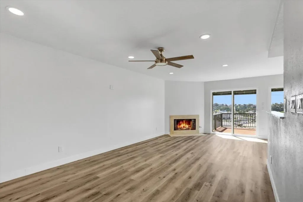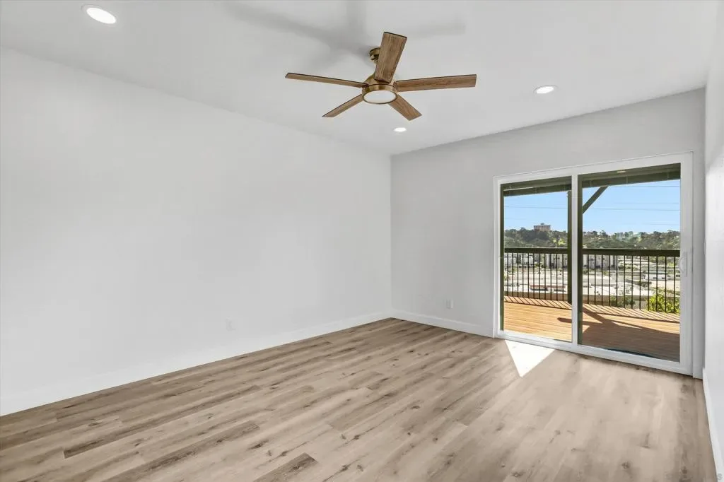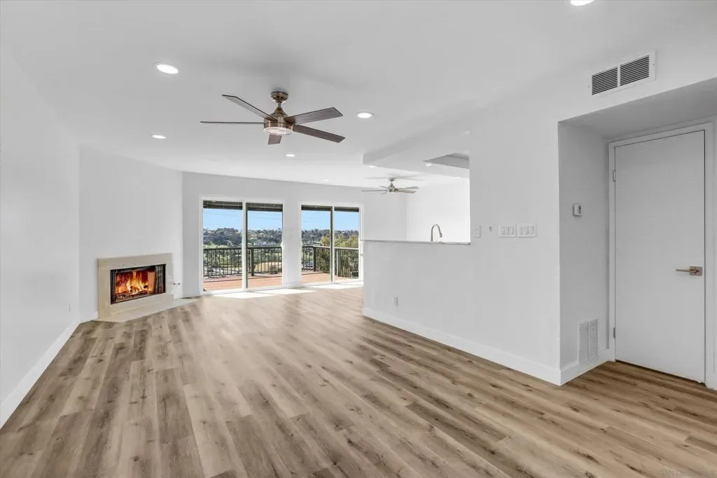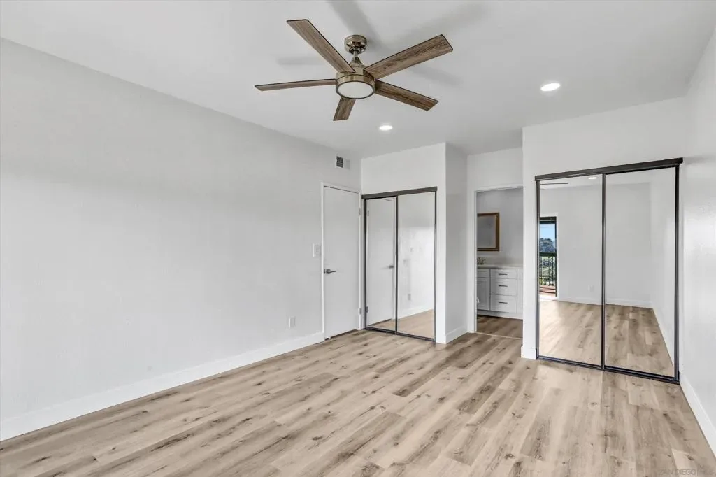 Beautiful view overlooking Fashion Valley. From your balcony you can enjoy stunning views of the mountains and lush greenery, and even from the kitchen you can see the beautiful mountains. The home features spacious balconies on both levels, including the upper level and the bedroom level, perfect for relaxing and enjoying the scenery. One bedroom is conveniently located at the main entrance level with its own private door, and downstairs there are two additional bedrooms, each with its own private bathroom, offering comfort and privacy. Recently remodeled, this property is located in a community that offers tennis courts, a swimming pool, and a jacuzzi. The location is very central, with several freeways just a few blocks away, making commuting easy. The complex is ideal for enjoying peaceful walks, and the home is filled with natural light, with windows that include built-in blinds.