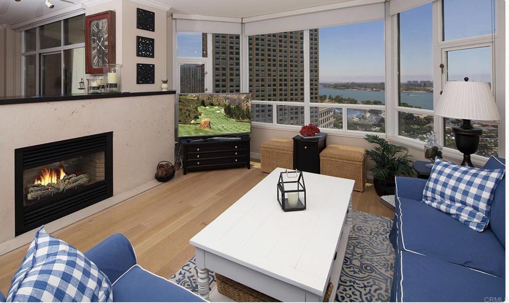 Park Place! Best Address in the Game! Come see this fabulous opportunity for breathtaking views from every room! This split bedroom plan is designed to maximize the views and afford gracious living in this iconic building. Enjoy beautiful hardwood floors throughout, crown molding, black granite counter tops and custom paint. Located at the apex of the Marina and Columbia Districts, it’s an easy stroll to the waterfront, Little Italy, Petco Park and Gaslamp. Park Place offers full services and amenities. Spectacular long term furnished rental! Luxurious Living on the 17th floor Park Place~ Breathtaking views from every room! .Beautifully furnished, Tastefully Appointed. Full Services and Amenities at ParkPlace.. This is living in Luxury… Pool, Spa, On Site Valet & Security. 2 secured underground parking spaces.. Forever Views of the Ocean, Harbor,Seaport Village.. San Diego – America’s Finest City..
