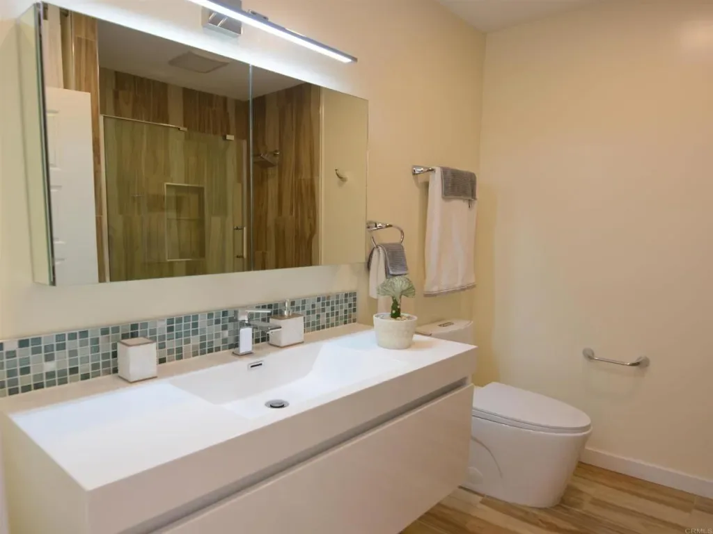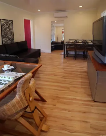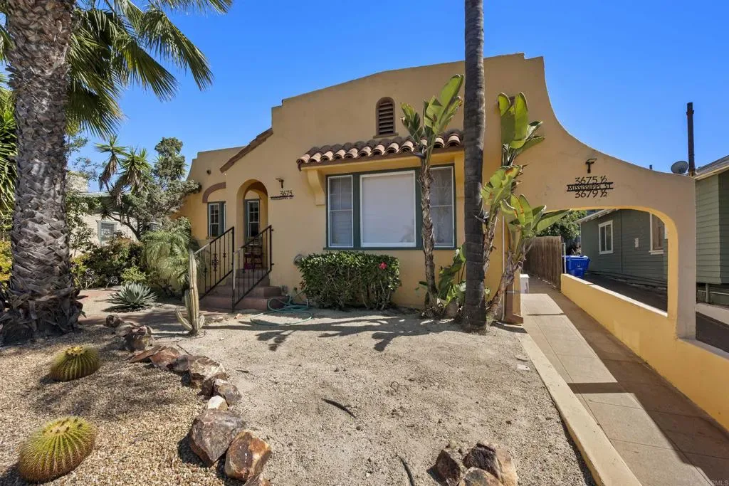 This 3-Unit residential property is certain to delight. 2bed 2bath front residence and 2 of studio units in the rear with an additonal bonus room. Perched above the street with exceptional draught tolerant xeriscape front landscape and abundant curb-appeal this Spanish style hacienda consists of 3 residential dwellings. Records show an original date built of approximately 1920, current records show an effective year built of 2020 due to the substantial improvements completed. Front-facing house (3675) improvements include full interior renovation creating an open living space where the use of light, honey oak wood-effect tile floors, quartzite, stone, complement the clean original exterior with the updated modern, contemporary interior style. Great room floor plan offers a spacious flow from the living/dining area to the impressive, well-appointed kitchen which includes stainless steel appliances and a center waterfall island with bar-height counter seating that steals the show. Direct access to the exterior patio from the kitchen makes alfresco dining a pleasure. Two bedrooms include a primary bedroom with ensuite bath offering full glass enclosure shower and a spacious 2nd bedroom with adjacent bath including a whirlpool tub for ultimate relaxation. A 4-zone mini-split system covers all spaces. This residence offers both gorgeous finishes, natural light and wood-effect tile floors and the list of improvements also include foundation repairs, reconfigured floor plans, upgraded electrical, plumbing, HVAC, water heater, drainage system and more. The rear building accessed from the driveway houses 2 studio units, 3675.5 and 3679.5. Each tastefully updated and includes recently installed appliances, mini-split system, hot water heaters. The rear lot with ample spaces and surrounded by trees creates a peaceful haven. It offers two substantial new resin storage sheds, a laundry closet, 3 separate flagstone patio areas and a bonus detached structure (thought to have been an original garage) currently assigned to unit 3679.5 and used as storage/den. Located 2-1/2 blocks away from North Park’s Morely Field sport complex this neighborhood offers an abundant array of recreation, local area eateries, entertainment and conveniences. The famous San Diego Zoo and Balboa Park are slightly over 1-mile away. Ease of access to freeways, San Diego beaches and San Diego International Airport make North Park one of San Diego’s treasured residential neighborhoods
