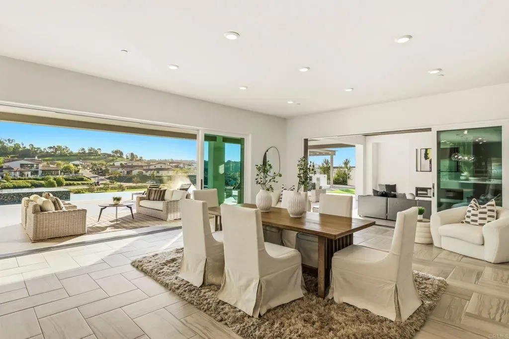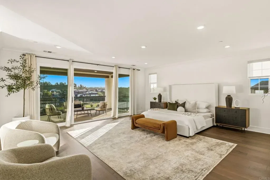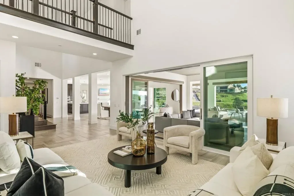 Experience refined Southern California living in one of the most coveted enclaves in San Diego. Nestled within the prestigious gated community of The Lakes Above Rancho Santa Fe, this exceptional Sterling Heights home is gracefully positioned on more than half an acre, capturing breathtaking sunset views over a serene community lake. Spanning approximately 6,100 square feet, this residence offers 5 generously appointed bedrooms and 5.5 baths and is thoughtfully designed for both grand-scale entertaining and effortless daily living. A charming private courtyard makes an elegant first impression and provides separate access to the highly desirable NextGen suite, ideal for multigenerational living, long-term guests, or independent young adults. Complete with its own entrance, living area, kitchenette, and laundry, this private retreat offers comfort and privacy while remaining seamlessly connected to the main home. Inside, soaring ceilings and expansive interiors create a light-filled ambiance throughout the open-concept floor plan. The formal living and dining spaces transition beautifully into the heart of the home, a chef’s kitchen designed to impress. Outfitted with premium appliances, including a six-burner dual range with griddle, built-in refrigerator, wine refrigeration, walk-in pantry, and butler’s pantry, the kitchen is elevated by rich espresso cabinetry, designer finishes, and an oversized center island ideal for gathering. Owned and fully paid-off solar panels enhance the home’s energy efficiency, providing long-term savings and sustainability. Multiple stacking glass doors open to a covered California Room, blurring the line between indoor and outdoor living, a hallmark of San Diego luxury coastal living. The main level also features a private office and a secondary ensuite bedroom, perfect for guests. Upstairs, the primary suite serves as a tranquil sanctuary, complete with a spa-inspired bath featuring a soaking tub, huge walk-in shower, dual vanities, and an expansive walk-in closet. Two additional ensuite bedrooms and a large versatile loft, ideal for a media lounge, playroom, or secondary living space, offer flexibility to suit any lifestyle. An upstairs laundry room with built-in cabinetry and sink enhances everyday convenience. Designed for year-round enjoyment, the resort-inspired backyard is a true showpiece. A saltwater pool and spa anchor the outdoor space, complemented by a fully equipped outdoor kitchen already connected to the property’s front sewer line via a 4-inch pipe, offering future-ready infrastructure for a potential ADU or poolside shower. Additional amenities include a putting green, sports court, manicured turf lawn, and multiple seating areas — all set against picturesque lake views that provide both privacy and a stunning natural backdrop. Residents enjoy access to the award-winning Poway Unified School District, including top-rated Del Norte High School and Del Sur Elementary. Just minutes away, The Crosby Club at Rancho Santa Fe acts as the social heart of the community, granting access to world-class amenities such as championship golf, tennis, pickleball, fine dining, a fitness center, and a heated lap pool. This is luxury living — redefined.