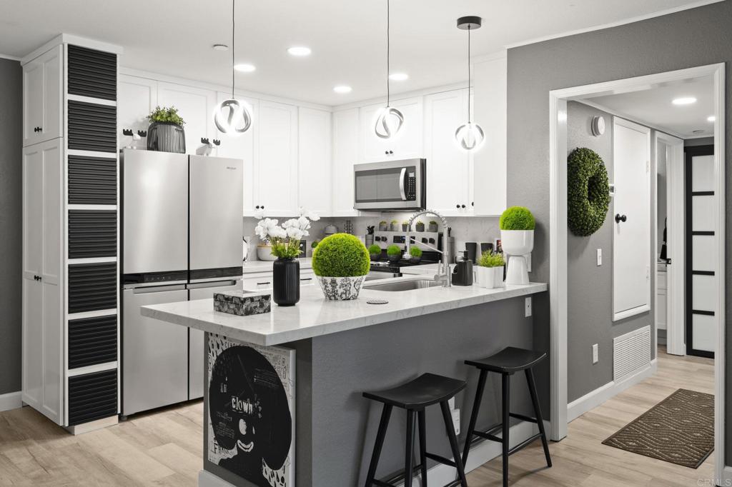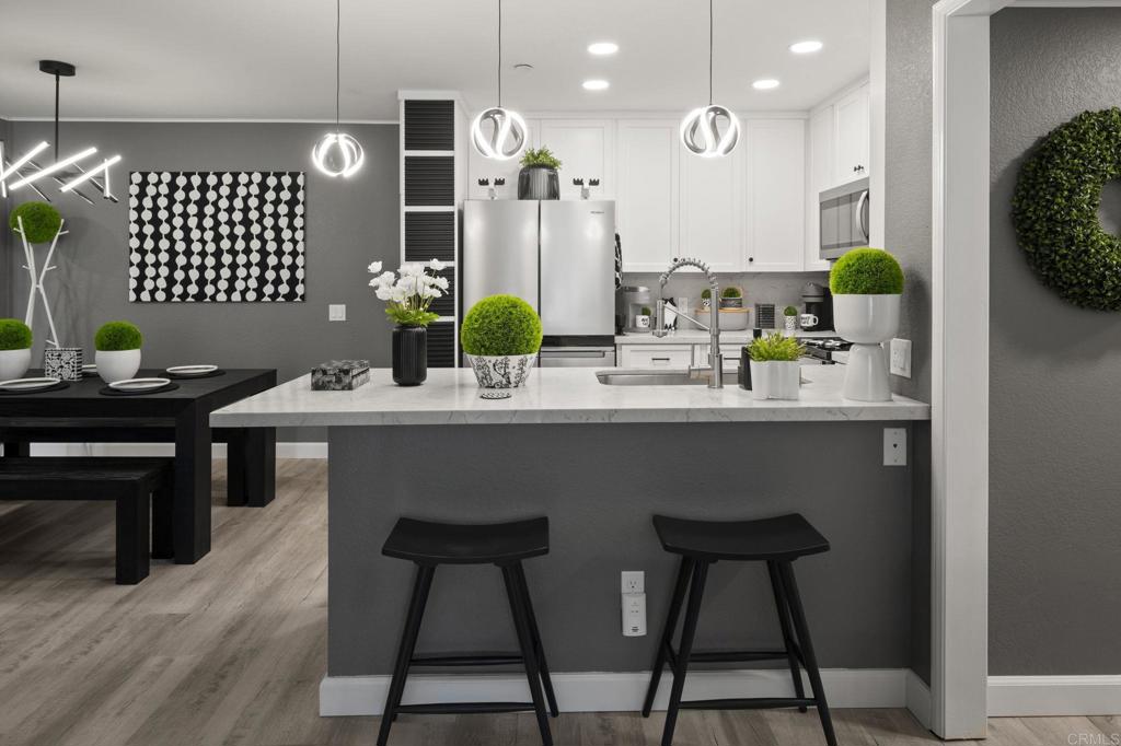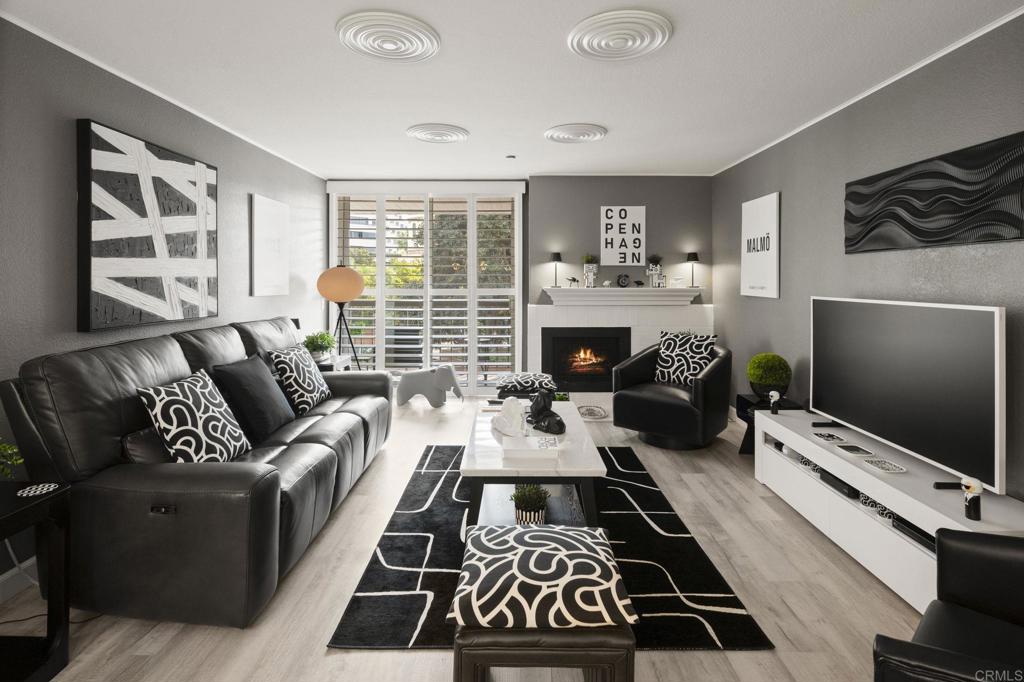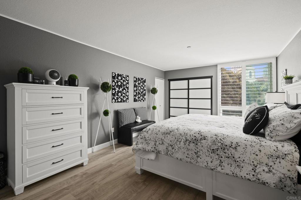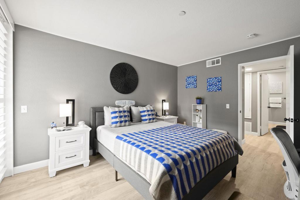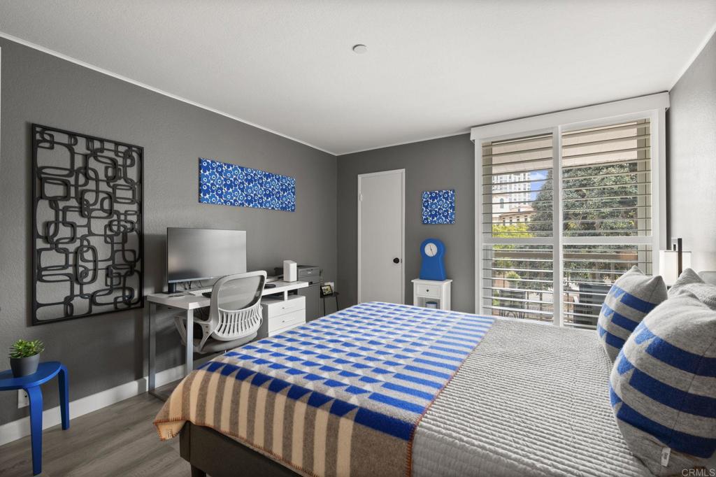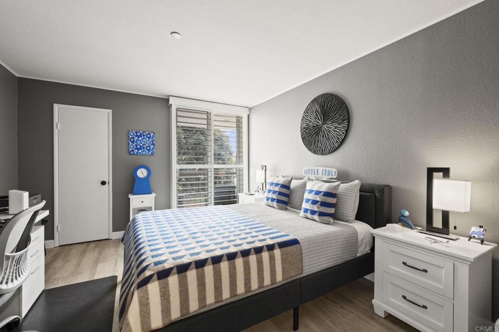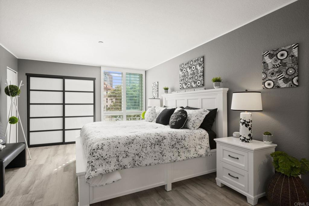Exquisite sophistication in the heart of downtown San Diego. Dream living awaits at 850 State Street, Unit 220, located in the highly desirable Marina Park District. This single story completely remodeled 2 bedroom, 2 full bath residence offers a refined, modern aesthetic with nothing left untouched. Upgrades include new flooring throughout, fresh interior paint, a fully remodeled kitchen with quartz countertops and a contemporary backsplash, brand new appliances, beautifully remodeled bathrooms, dual pane windows, custom plantation shutters, and sleek new closet doors, creating a polished and cohesive look. Both bedrooms are very oversized with great closet space. The highly sought after split bedroom floor plan feels bright and open, offering both privacy and versatility. Enjoy an eat in kitchen, a separate dining area, and ample storage throughout. The oversized private balcony provides serene city skyline views, including the iconic Manchester Grand Hyatt San Diego, along with a peaceful interior courtyard. Marina Park residents enjoy a secure, monitored lobby and resort-style amenities including two heated pools and spas, interior walking paths, fitness rooms, saunas, a recreation room, library, lush gardens, fountains, guest parking, gated garage access, and 24-hour electronic surveillance. This unit includes two gated underground parking spaces. Minutes to Seaport Village, Petco Park, Little Italy etc. FHA and VA approved.