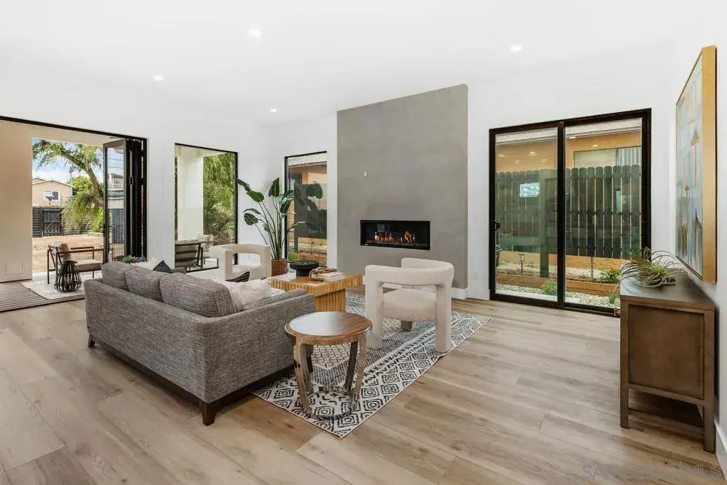 Experience luxury and design in this brand new, fully permitted remodel on a spacious 7,300 sq ft lot. Blending Scandinavian-inspired aesthetics with high-end finishes, this home offers a serene and sophisticated living environment. Enjoy breathtaking 360° views, including SeaWorld fireworks and Bay vistas, from two expansive second-floor decks and a stunning rooftop terrace. The open-concept kitchen and living space flow effortlessly into the backyard through bi-fold doors, creating a seamless indoor-outdoor living experience. Design Highlights: Custom white oak cabinetry Champagne brass fixtures Built-in bar and striking Venetian plaster fireplace Spa-like primary bath with terrazzo floors and lime plaster walls Flooded with natural light, showcasing clean lines and calming wood-and-white tones Modern Amenities: Solar panels EV charger. Two view decks, one rooftop and one off Primary suite. PRICE AND COMPARE -THIS IS THE BEST BUY IN THIS PRICE RANGE!