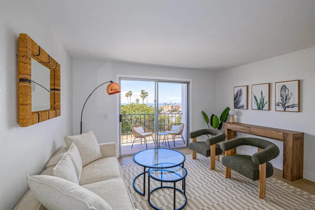 Model Home – Residence 208 at The Heights at Bay Park. Arguably one of the most coveted locations in the entire community, this beautifully appointed two-bedroom, two-bath model residence showcases sweeping views extending all the way to the ocean. Positioned to capture coastal breezes and sunset skies, this light-filled home offers an exceptional combination of location, outlook, and thoughtful design. The open-concept living area flows seamlessly to a private balcony, creating an ideal setting for indoor-outdoor living. The kitchen opens to the dining and living spaces, making everyday living and entertaining effortless. Professionally designed as the community’s featured model, this residence includes upgraded finishes, contemporary styling, and carefully curated details throughout. The spacious primary suite offers an en-suite bath and generous closet space, while the secondary bedroom and full bath provide flexibility for guests, home office, or additional living needs. Every space has been thoughtfully arranged to maximize comfort, functionality, and natural light. Located within close proximity to beaches, Mission Bay, coastal bike paths, dining, shopping, and major freeways, The Heights at Bay Park offers convenience and lifestyle in one of San Diego’s most desirable coastal-close neighborhoods. As the showcased model home, Residence 208 represents a rare opportunity to own one of the best-positioned homes in the community, combining ocean views, designer upgrades, and a highly sought-after location.