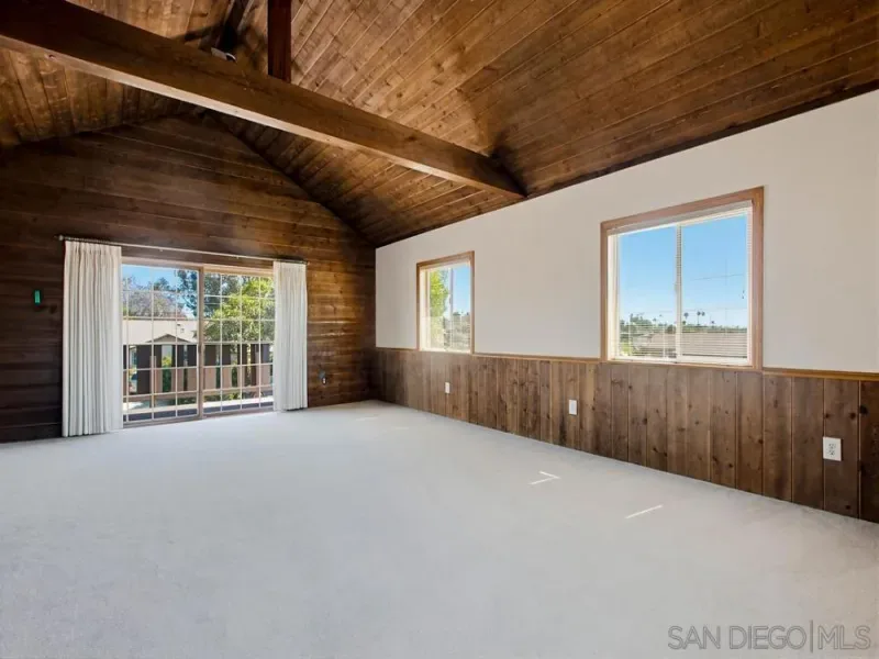 Well maintained two story home in convenient Clairemont, close to shopping, restaurants and parks. Open living room with adjacent dining area and plenty of kitchen storage. All bedrooms are downstairs with large loft upstairs. Convenient built ins with exterior balcony and high wood beam ceilings make for perfect 2nd story play or office area. Shady pergola for outdoor rec and a low maintenance yard with gardener included.