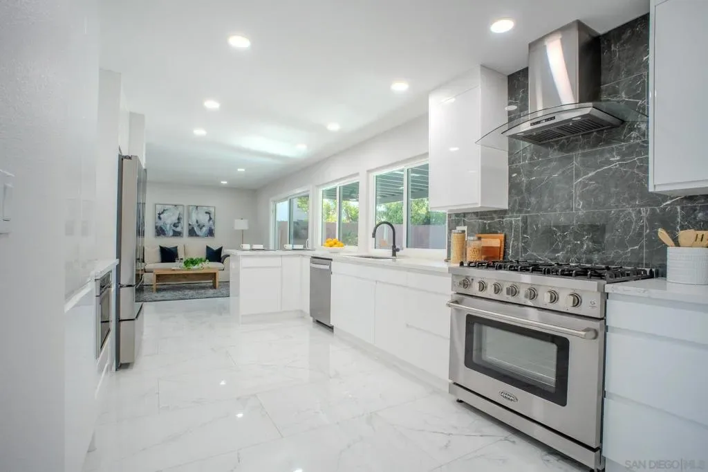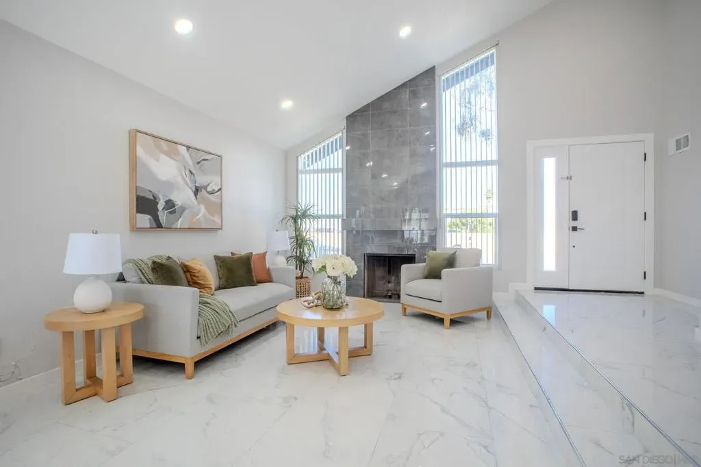 Completely transformed with over $450,000 in high-end upgrades, this exceptional Clairemont residence blends modern luxury with thoughtful design. The brand-new kitchen showcases white, high-quality European cabinetry, all-new stainless steel appliances, and elegant finishes ideal for both everyday living and entertaining. The home features new porcelain tile flooring, new hardwood floors upstairs, a custom walk-in closet, new doors and sliding doors, and triple-paned windows for comfort and energy efficiency. Major system upgrades include a new roof, new HVAC system, new ductwork, new electrical panel, new tankless water heater, and new garage door opener offering true peace of mind. The backyard is an entertainer’s dream with a new patio, custom entertainment wall, outdoor kitchen, new concrete and turf, and a pool converted to a modern saltwater system. Additional highlights include a Tesla charger and seamless indoor-outdoor living. Ideally located in the heart of Clairemont near shopping, dining, and freeway access, this turnkey home offers luxury, efficiency, and style in one of San Diego’s most desirable neighborhoods. No HOA. No Mello Roos.