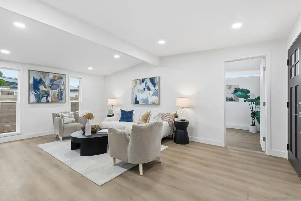 Beautifully remodeled Mid-Century Modern home in the heart of San Diego, offering style, flexibility, and exceptional indoor-outdoor living. This 4 bed, 2 bath residence features vaulted ceilings and clerestory windows that flood the home with natural light. The open layout flows seamlessly into a spacious primary suite with walk-in closet and spa-inspired bathroom with oversized shower. The versatile fourth bedroom offers excellent ADU potential or can be used as a family room, home office, or gym. Step outside to a generous backyard with a lanai-style covered patio and a large wood storage shed—perfect for bikes, surfboards, tools, and extra storage. An oversized driveway provides space for multiple vehicles, RV, boat, or recreational toys. A rare opportunity combining architectural character, modern upgrades, and functional outdoor living in a prime central location.