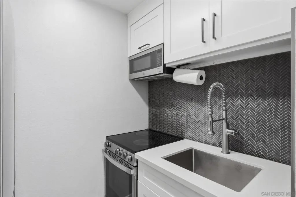 Impeccably remodeled and completely turnkey, this studio residence at 6333 Mount Ada Rd #159 offers a rare opportunity for both investors and owner-users seeking flexibility and long-term upside. The thoughtfully designed layout provides the option to easily convert into a true one-bedroom by adding a privacy wall, maximizing both functionality and rental potential. The interior has been fully upgraded with modern vinyl plank flooring, custom paint, and a beautifully redesigned kitchen with soft-close cabinetry, quartz countertops, a herringbone backsplash, industrial-grade sink, and high-end appliances. Also, a new vanity, updated lighting, fixtures, and hardware, creating a clean, contemporary finish throughout. Located within the highly desirable Blossom Walk community, residents enjoy a quiet, fully gated environment with resort-style amenities including a pool, fitness center, and recreational areas. The complex has undergone recent upgrades, including an HOA adjustment that positions the community for improved long-term stability with fewer increases anticipated in the near future. From an investment standpoint, the property benefits from strong rental demand driven by its proximity to major employment & education hubs. Minutes from UCSD, Mesa College, beaches, and with easy freeway access, the location consistently attracts high-quality tenants. Walkability to shops & restaurants helps support premium rental rates and low vacancy. Prime coastal, Amenity Rich Location with rare combination of turnkey condition, flexible layout, and strong rental performance! Come See!