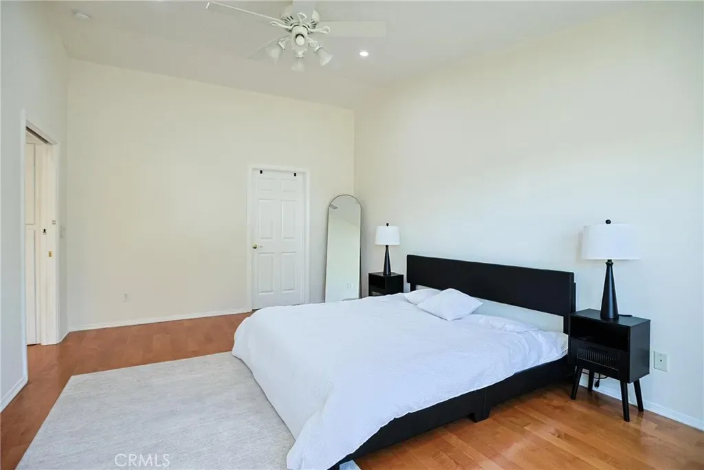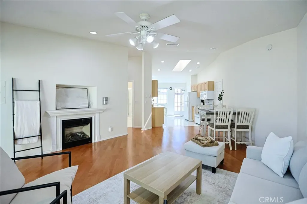 The attached second living unit, built in 2003, is connected to the main house but offers a private entrance and separate living space. Features include hardwood flooring, vaulted ceilings, a spacious bedroom with walk-in closet, an open living area connected to the kitchen and dining space, and a cozy gas fireplace.