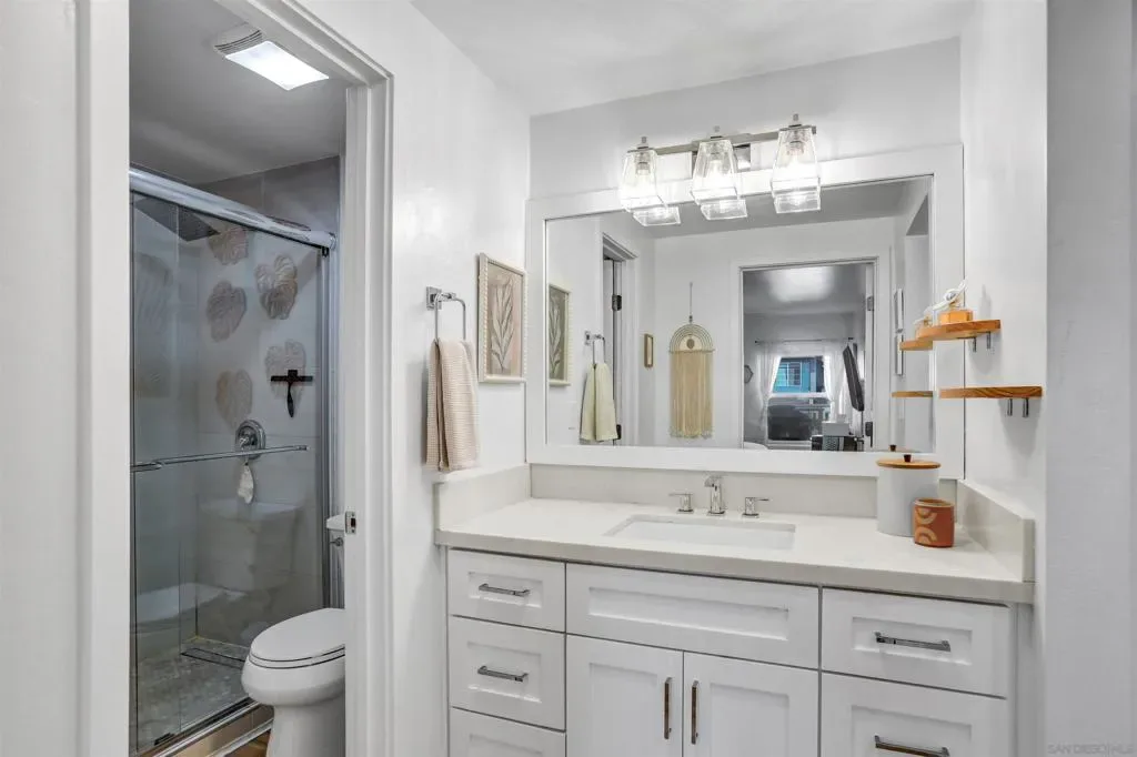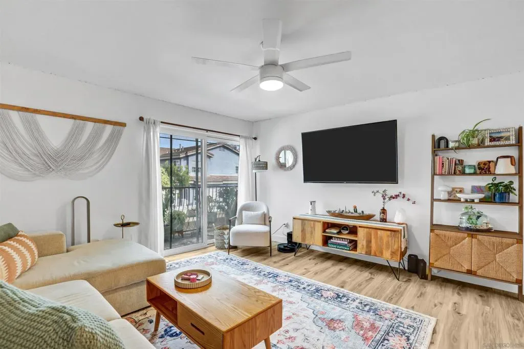 Turn-key Crown Point condo just blocks from the bay! This beautifully updated and light-filled 1-bedroom, 1-bath condo offers thoughtfully designed living space with a modern open-concept layout. The upgraded kitchen features generous quartz countertop space, stainless steel appliances, and seamless flow into the living area, which opens to a private balcony. Ideally situated just two blocks from Crown Point and within walking distance to the bay, shops, restaurants, and everything Pacific Beach has to offer. The well-maintained community offers low HOA dues and includes one assigned parking space conveniently located near the main entrance. Complex offers BBQ area, solar, laundry facilities and bike storage. 60 day minimum for rentals and limit 2 pets under 75lbs each.Tenant-occupied through mid-July, presenting an excellent opportunity for both investors and future owner-occupants. Assigned parking space #23. Completely updated with waterproof vinyl flooring throughout. Features a custom kitchen with quartz countertops in both the kitchen and bathroom, stainless steel appliances, and recessed lighting. Additional upgrades include ceiling fans in the bedroom and living room, under-cabinet lighting, a barn door, and upgraded deck flooring on the private balcony.