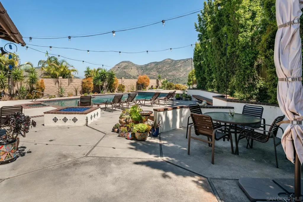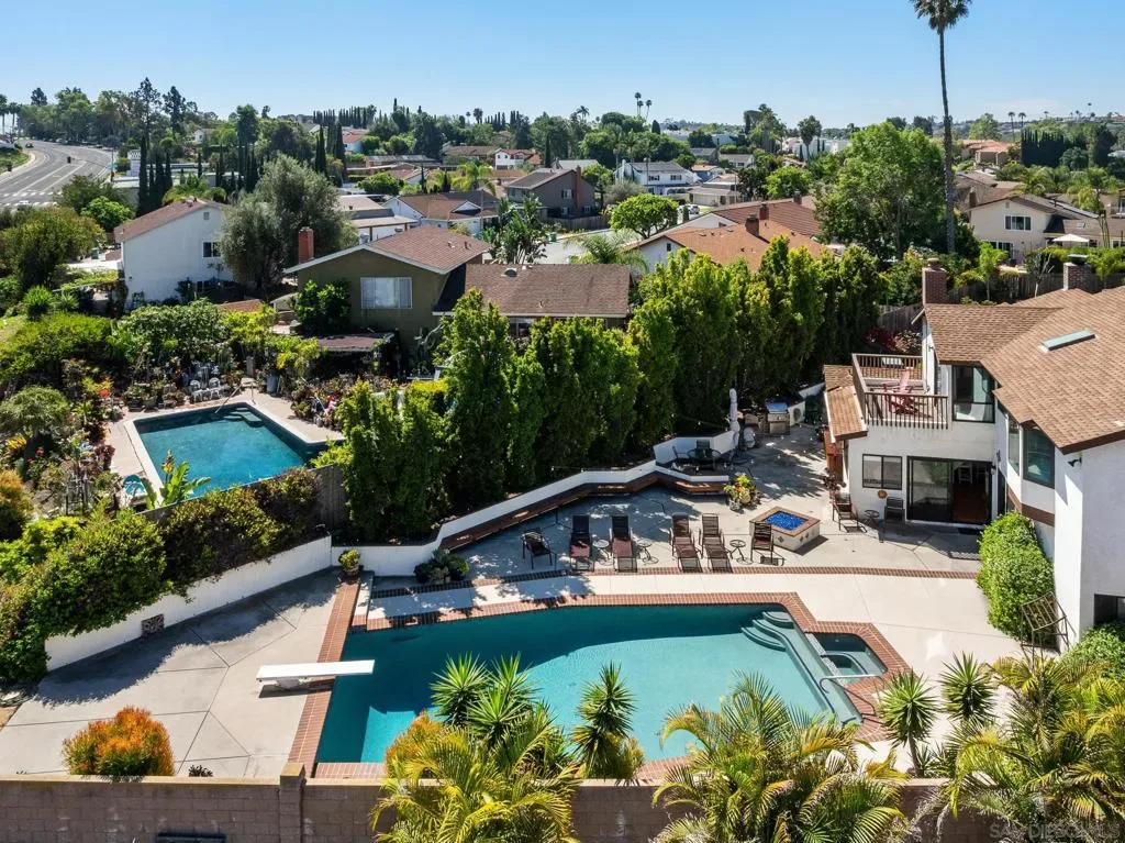 Truly unique Vista Del Cerro opportunity with stunning views of Cowles Mountain. This expansive floor plan features an open kitchen design, abundant natural light, and seamless flow for both everyday living and entertaining. The spacious primary suite offers a walk-in closet and a large primary bath, creating a comfortable private retreat. Two additional upstairs bedrooms are generously sized and filled with natural light. The main level includes an additional bedroom with an ensuite bath, along with three more bedrooms—ideal for multi-generational living or flexible space needs. A large three-car garage provides ample storage and convenience, while owned solar panels provide energy efficiency and long-term savings. Step outside to your backyard oasis, complete with a BBQ area, expansive pool and spa, and plenty of space to entertain or relax while taking in the views. Ideally located within walking distance to highly rated Dailard Elementary and scenic Dailard Park. This home is also within the boundaries for Pershing Middle School and Patrick Henry High School. A great value and a true must-see!