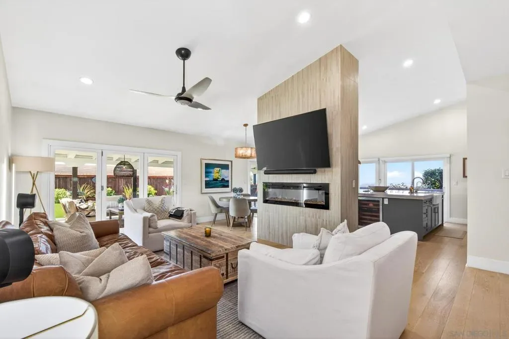 Experience coastal luxury in this beautifully reimagined single-story home in Del Mar, ideally perched on the coveted west side of Recuerdo Drive with unobstructed ocean views. This Property offers the perfect blend of elegance, comfort, and seamless indoor-outdoor living. Inside, enjoy sunlit spaces featuring engineered hardwood floors, custom cabinetry, and a striking designer kitchen with a quartz island, hidden speakeasy pantry, and state-of-the-art appliances—all framed by breathtaking views of the Pacific Ocean, Del Mar Racetrack, and Crest Canyon. Multiple Cantina doors lead to a flat entertainer’s yard with turf and expanded concrete, offering room for a pool or ADU and endless possibilities for hosting or relaxing. The primary suite is a tranquil retreat with backyard access, designer finishes, and a spa-inspired bath. Modern upgrades include a Google smart home system, Nest security, EV charging, and more. Ideally located west of the 5, you’ll be moments from top-rated schools, shopping, dining, and Del Mar Beach. Throughout the home, thoughtful upgrades and designer touches elevate every space. This turnkey property is more than a home—it’s a lifestyle. Don’t miss this rare gem in one of Southern California’s most desirable coastal communities.