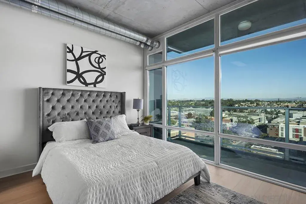 Elevate your urban lifestyle with this Smart Corner residence, ideally positioned in the vibrant heart of East Village. This east-facing studio is a true vantage point showcasing views of the city skyline, Balboa Park, distant mountains, and even glimpses of the iconic Coronado Bridge from your own balcony. Designed with an industrial-chic aesthetic, the home features stylish concrete accents and exposed ductwork that pair beautifully with the recently installed luxury vinyl plank flooring, creating a modern, loft-inspired atmosphere. The kitchen is equipped with updated stainless appliances, while the bathroom offers a practical shower/tub combination. Fresh interior paint and a secured parking space add to the comfort and convenience. Exceptionally versatile, this studio serves perfectly as a smart investment property, an efficient live-work space, or a serene urban retreat. Discover the ease of Downtown living in this East Village pied-à-terre, where dining, culture, and transit are just steps away. Smart Corner is an all-encompassing hub of work, play, shop, and live! It is conveniently located near the 163 freeway, I-5, Highway 94, Petco Park, the Gaslamp Quarter, and Balboa Park. A trolley station located directly below the building ensures Smart Corner has all an urban dweller could want. Amenities include a roof-top sun deck with spa, a barbecue area, gym, and wet bar on the 20th floor, and fully equipped exercise room. Welcome home!