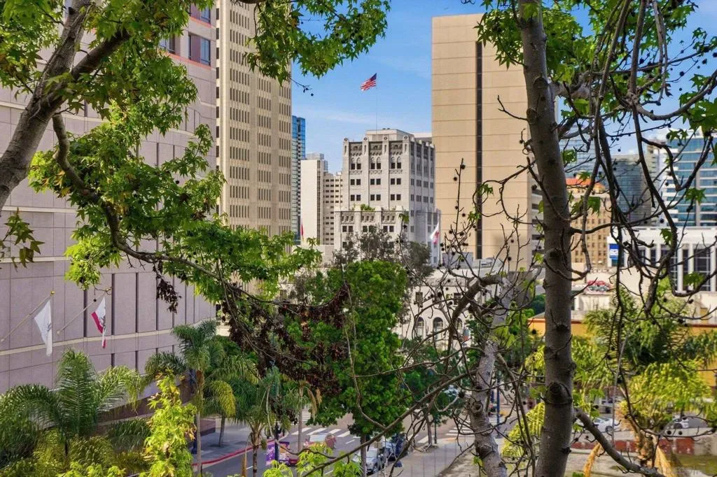 Experience the best of downtown living in this 4th-floor condo at Symphony Terrace in sought-after Cortez Hill. Offering 1 bedroom, 1 bath, and 673 sq ft, this home features an inviting open layout and a bright, comfortable living experience in one of Downtown San Diego’s most desirable locations. The remodeled kitchen has been opened to the main living area, creating a more spacious, connected feel that’s ideal for everyday living and entertaining. Floor-to-ceiling windows fill the space with natural light, while the covered private balcony offers a relaxing outdoor retreat. Additional highlights include in-unit laundry and one secure parking space. Symphony Terrace is a VA-approved community with a pool, spa, sauna, exercise room, BBQ area, and gated entry. The community is currently undergoing exciting community enhancements, including a revamped fitness center, Pool, refreshed outdoor lounge spaces, and updated flooring throughout the common areas, bringing a fresh, contemporary feel to the entire building. Enjoy the charm of Cortez Hill with easy access to Balboa Park, Little Italy, the Gaslamp Quarter, Petco Park, dining, shopping, and nightlife. This is a fantastic opportunity for a first-time buyer, second-home purchaser, or anyone seeking low-maintenance downtown living. Schedule your private tour today.
